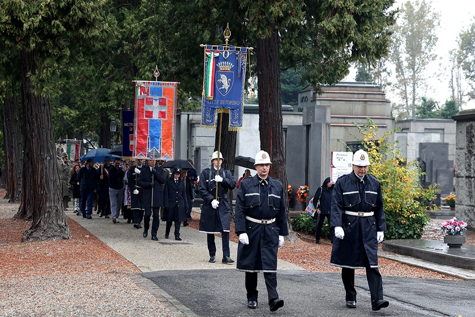 Questa mattina, al Cimitero Monumentale di corso Novara, si è svolta la consueta cerimonia di commemorazione per la Giornata dei Defunti, alla presenza del sindaco Stefano Lo Russo, delle autorità civili e militari e delle rappresentanze delle associazioni combattentistiche e della Resistenza. Il corteo, aperto dal Gonfalone della Città di Torino, ha reso omaggio ai monumenti e ai cippi dedicati ai caduti di tutte le guerre.