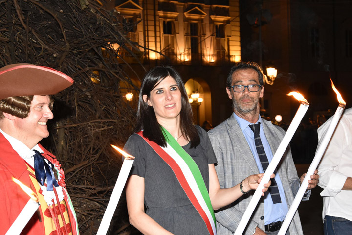 Il corteo è poi ripartito da Palazzo Civico per raggiungere piazza Castello, dove la Sindaca Appendino, Gianduia e le autorità cittadine hanno appiccato il fuoco alla catasta del Farò.