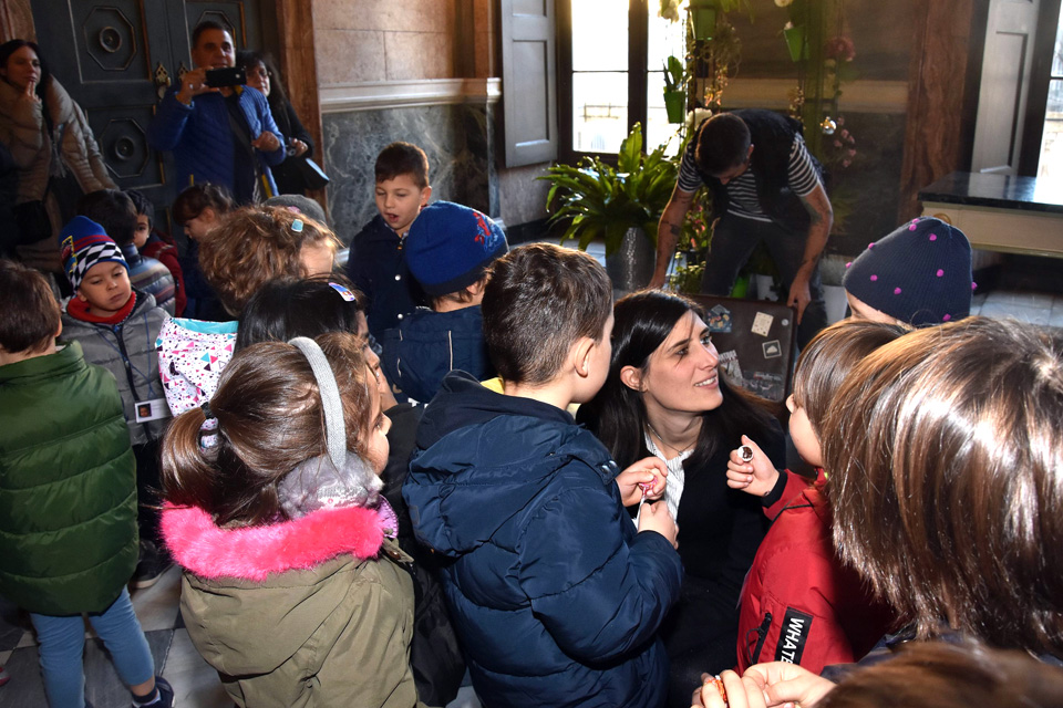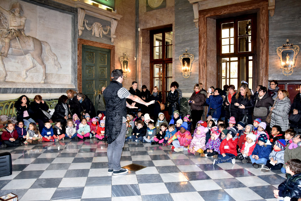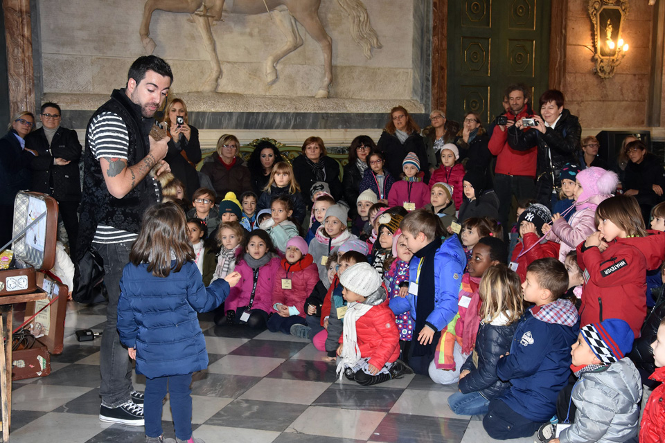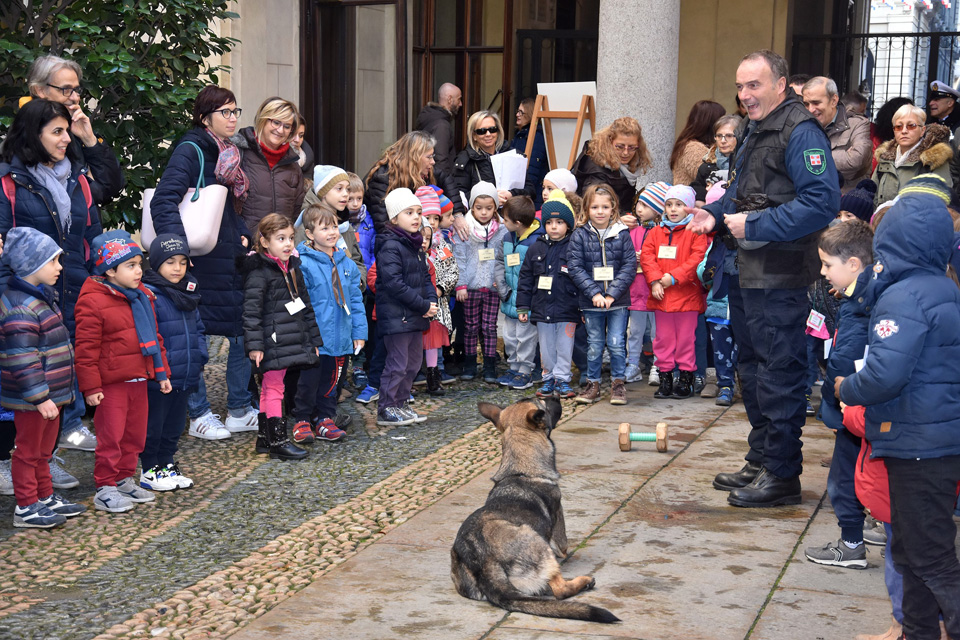 La mattinata ha avuto inizio nel cortile d’onore di Palazzo Civico dove i bambini hanno assistito alle performance dei cani della squadra cinofila della Polizia Municipale.