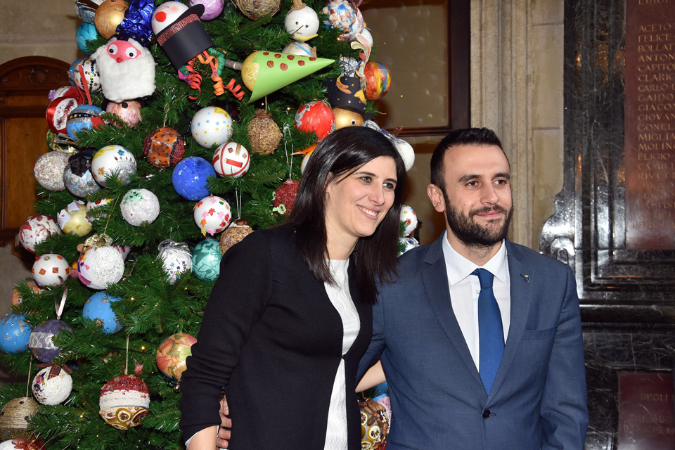 In seguito i bimbi sono saliti in Sala Marmi dove sono stati coinvolti in uno spettacolo di magia e poi, insieme alla Sindaca Chiara Appendino e al Presidente del Consiglio Comunale Fabio Versaci, hanno finito di addobbare l’albero di Natale con le ultime palline rimaste.