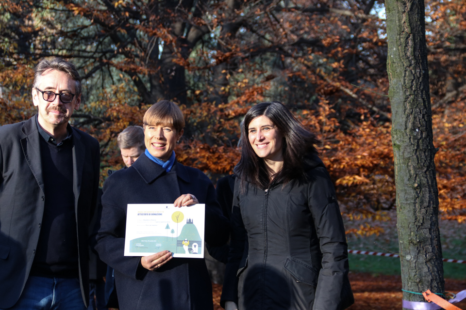 A seguire la Presidente Kaljulaid e la sindaca Appendino, insieme all’assessore all’Ambiente Alberto Unia, si sono recate nel Parco del Valentino per la posa di una quercia donata dalla Repubblica d’Estonia alla nostra città , di fronte alla Fontana dei Mesi. L’assessore consegnerà alla Presidente un Attestato di donazione (progetto “Dona un albero alla tua città â€).