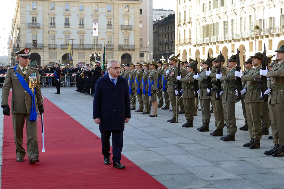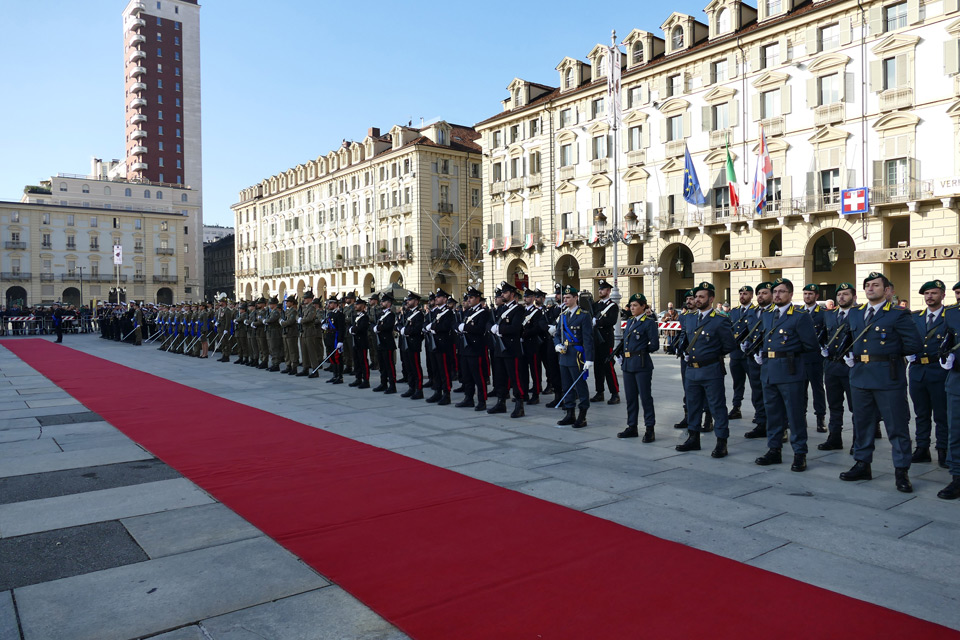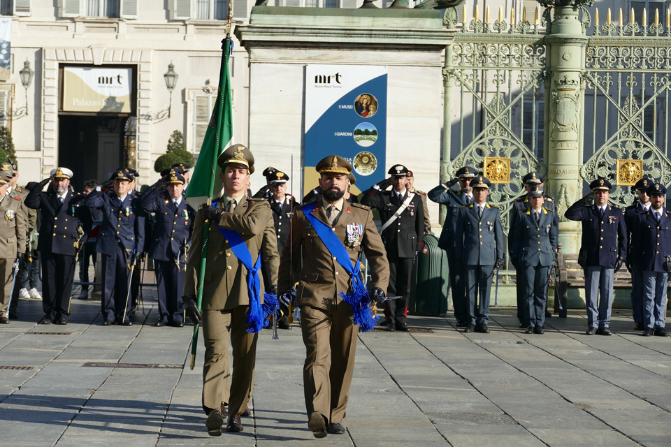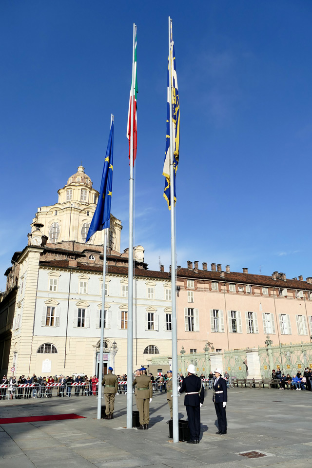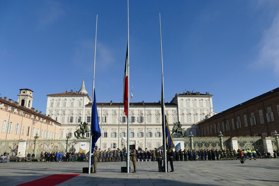Nella mattinata a Torino, in piazza Castello, si è svolta la cerimonia dell’alzabandiera seguita dalla funzione religiosa per commemorare i Caduti di tutti i conflitti bellici, al Tempo della Gran Madre di Dio.