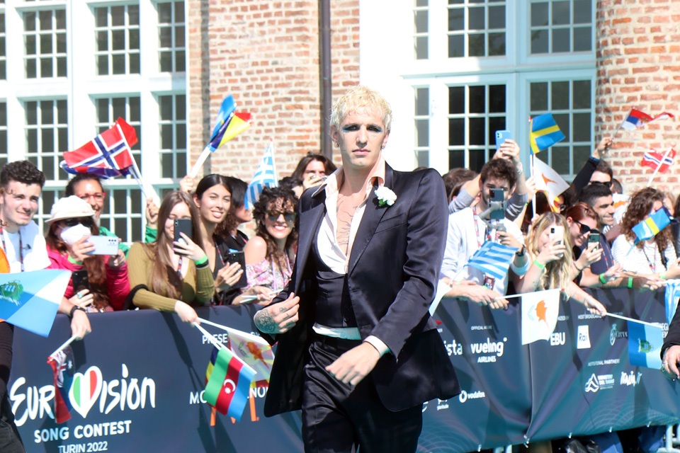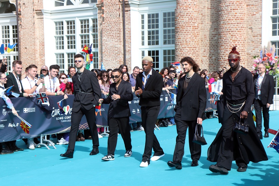 Nella splendida cornice della Reggia di Venaria con la la pioggia che a metà sfilata ha costretto l’organizzazione ad estrarre gazebo ed ombrelli hanno sfilato fra gli altri i rappresentanti dell’Italia Mahmood e Blanco e Achille Lauro per San Marino.