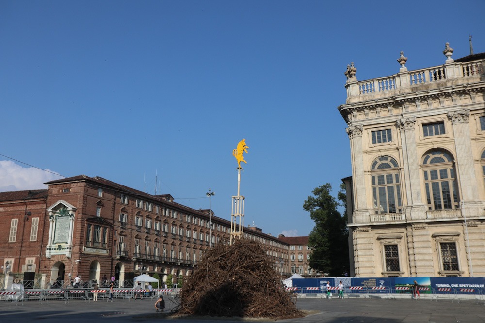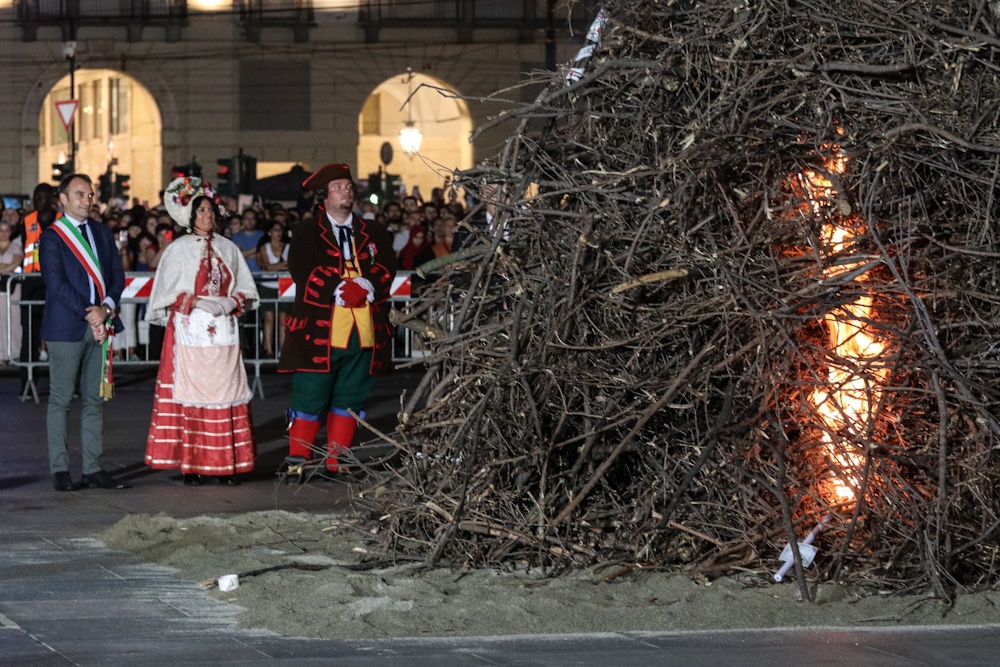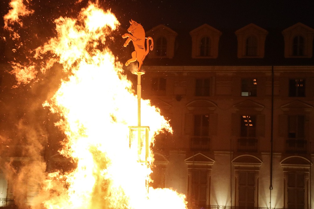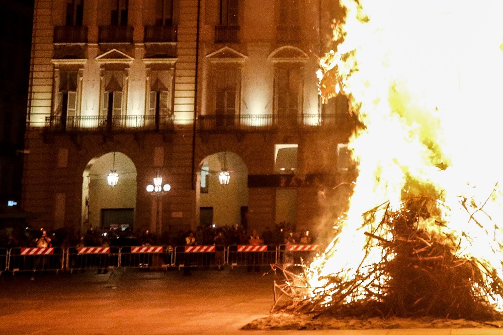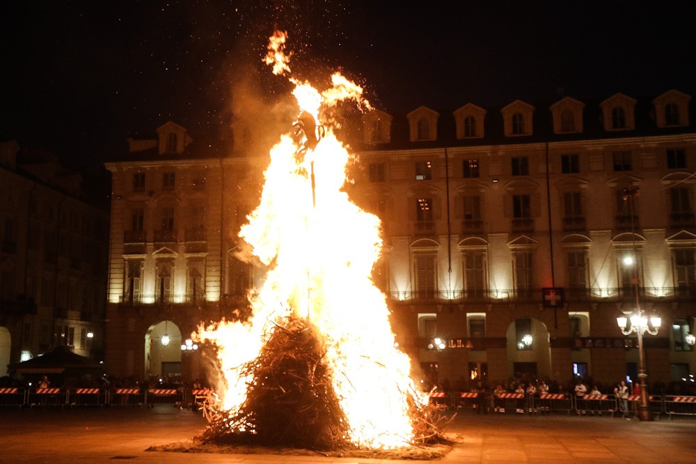 Quest’anno la catasta accesa in piazza Castello è caduta verso Porta Nuova, posizione che dovrebbe essere di buon auspicio.