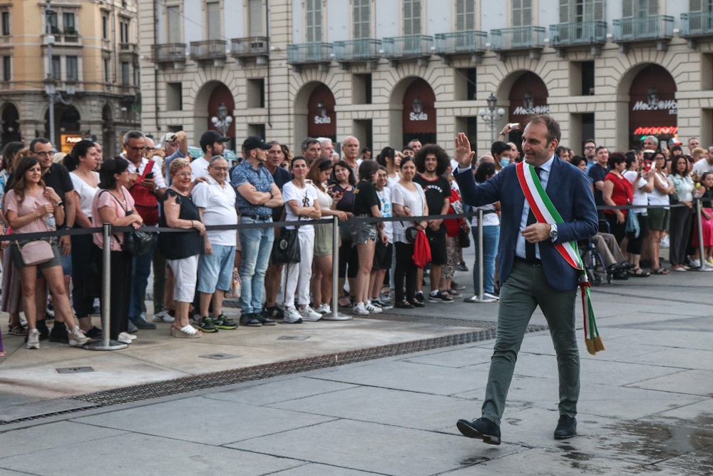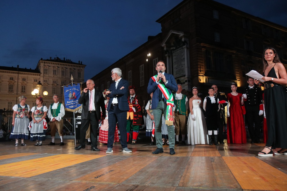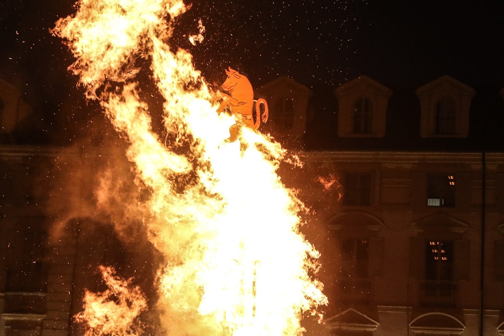 Il corteo è quindi ripartito da Palazzo Civico in direzione piazza Castello, dove il Sindaco Lo Russo, Gianduia e le autorità cittadine hanno appiccato il fuoco alla catasta del Farò.
