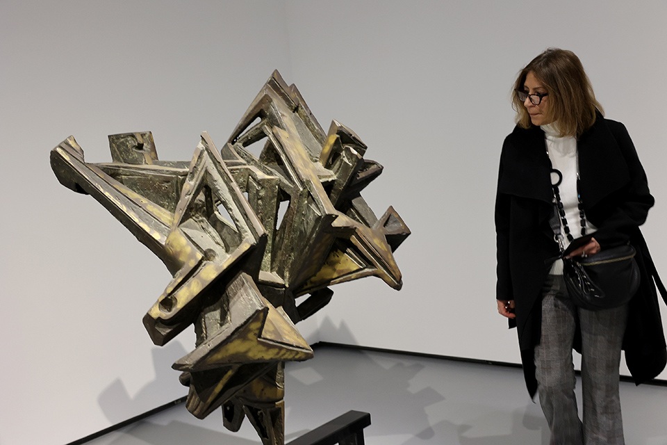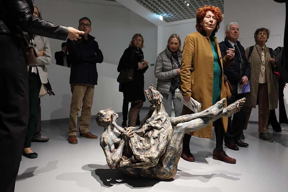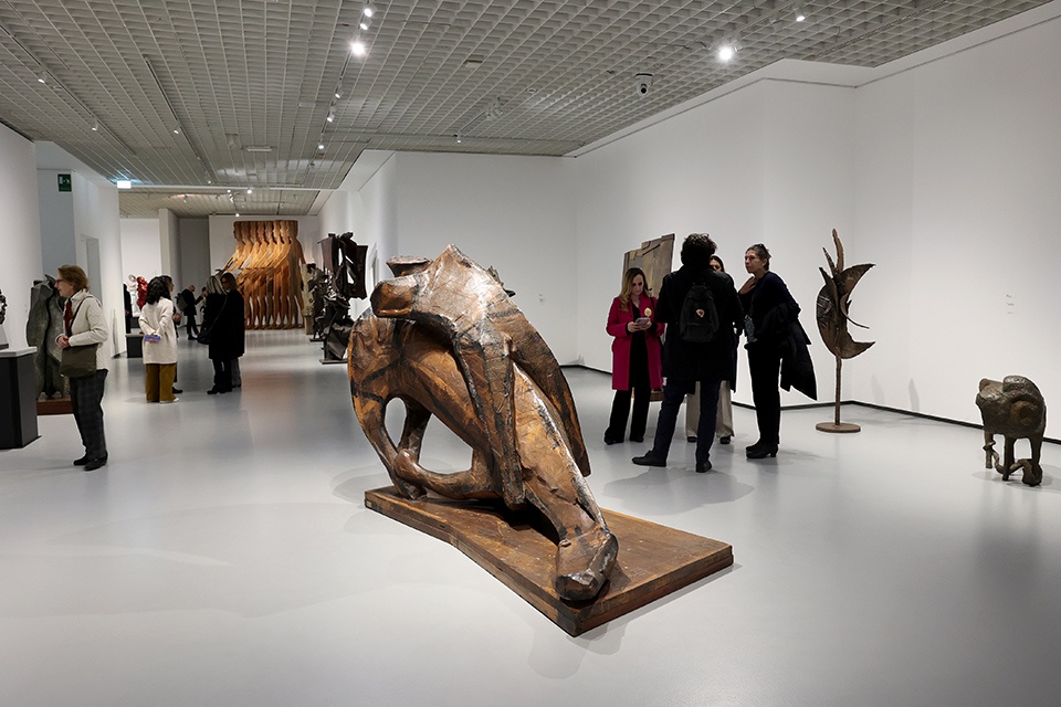 Il percorso in mostra prende avvio dal confronto sorprendente tra le figure femminili del Ritratto di Eva di Edoardo Rubino, scultore dei Savoia e Senatore del Regno, e l’implosivo espressionismo de La pazza di Sandro Cherchi, per poi proseguire rievocando le tante declinazioni della scultura informale italiana. Questa prima parte attesta come, intorno al 1945 e negli anni a seguire, salvo poche eccezioni, la scultura cominci ad affrontare una serie di svolte di grande portata: tenta di uscire da una dimensione o da un pensiero di impostazione monumentale, o ornamentale, o di ritrattistica sia celebrativa sia privata, per avvicinarsi a nuovi soggetti e tecniche sperimentali. Per illustrare il nuovo corso della scultura di questo periodo, oltre a Cherchi e Giuseppe Tarantino trovano spazio le terrecotte di Leoncillo, i bronzi dinamici di Umberto Mastroianni e di Pietro Consagra, i ferri di Franco Garelli, di Nino Franchina, gli assemblaggi di Ettore Colla. Al contempo, campeggiano in mostra il drammatico gruppo ligneo de Miracolo (Olocausto) di Marino Marini e il grande Concetto spaziale in metallo di Lucio Fontana, cui fanno da contraltare le Donnine in ceramica di Fausto Melotti.