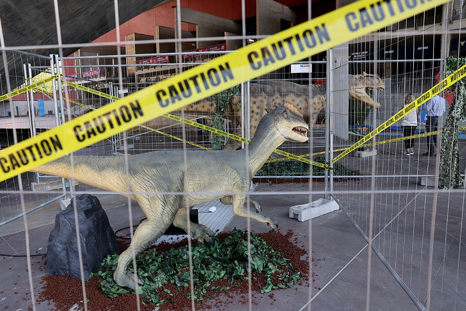 L’area esterna del Palavela di Torino si trasforma per l’estate 2023 in uno scenario apocalittico a seguito dell’invasione dei dinosauri. Un percorso che porta faccia a faccia con i dinosauri più conosciuti: dall’erbivoro Triceratops al maestoso Brachiosaurus, fino al terribile Tyrannosaurus Rex. Tutti i dinosauri, a grandezza naturale e riprodotti nei minimi dettagli; respirano, si muovono, sono vivi, grazie alla tecnologia animatronica.