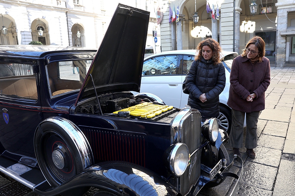 I nuovi mezzi ecologici del Comune hanno avuto un illustre precedente già nello scorso secolo: era il 1953, infatti, quando una Fiat Balilla degli anni ’30, che veniva utilizzata dal Sindaco Amedeo Peyron per i suoi spostamenti in Città , venne trasformata in auto a motore elettrico dai meccanici comunali. Nel vano motore e nel bagagliaio due ingombranti batterie le consentono, ancor oggi, di viaggiare, seppure per pochi chilometri.