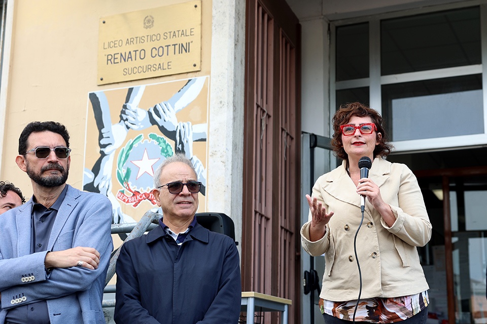 È stato inaugurato questa mattina dall’assessora alle Politiche Educative e Giovanili Carlotta Salerno il murales realizzato dall’artista Francesca Nigra, in arte Nice and the Fox, sulla facciata della succursale del Liceo Artistico Statale Renato Cottini.