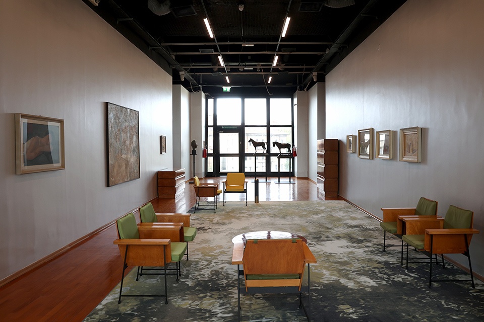 A seguire una sala di riposo, inondata dalla luce naturale come nel progetto originario del 1959, accoglie arredi, sculture e dipinti della prima metà del Novecento. Questo ambiente, immaginato come un momento di decantazione, è la premessa a un ordinamento giocato sulle relazioni, risonanze e attrazioni tra opere e nuclei tematici di cronologie anche molto distanti.