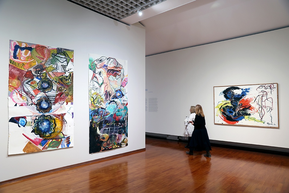 Ogni sala è il capitolo di un racconto, con la propria narrazione e i propri personaggi. Ad accumunare le storie sono i motivi tratti dalla poetica e dalla pratica delle tre artiste che con le loro mostre, animano gli spazi della GAM: Berthe Morisot e la sua pittura ariosa, intrisa di luce; Mary Heilmann e il suo approccio non ortodosso alla forma e al colore, Maria Morganti e la sua metodica e lenta ricerca sul tono cromatico. Sala dopo sala, le opere sono allestiste a risuonare le une accanto alle altre. Un ambiente, con opere di Gastone Novelli, Achille Perilli, Alberto Burri, Cy Twombly e Franco Vaccari, è dedicato a quelle sperimentazioni segniche degli anni Cinquanta in cui i muri si trasformano in palinsesti di vita vissuta.