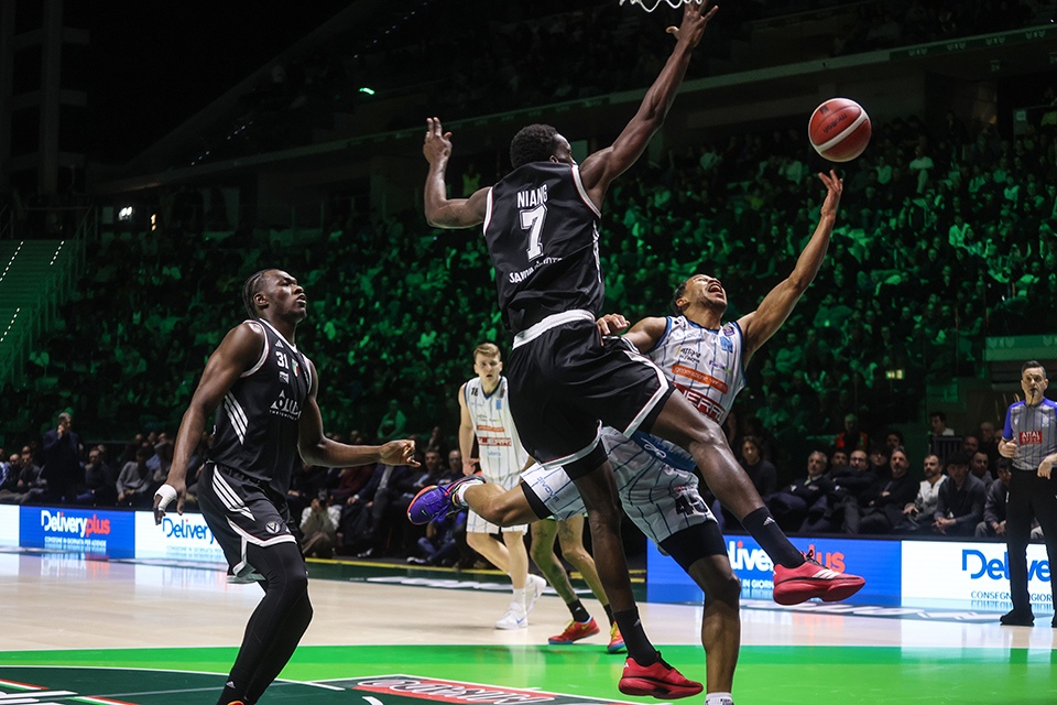 Ad aprire il programma è stata la sfida tra Reyer Venezia e Derthona Basket. A imporsi è stata Tortona con il punteggio di 95-87 al termine di una gara intensa e ben giocata da entrambe le formazioni. Dopo un avvio equilibrato, la formazione piemontese ha trovato continuità offensiva e maggiore solidità nei momenti chiave, riuscendo a contenere i tentativi di rimonta dei lagunari e conquistando così l’accesso alla semifinale.