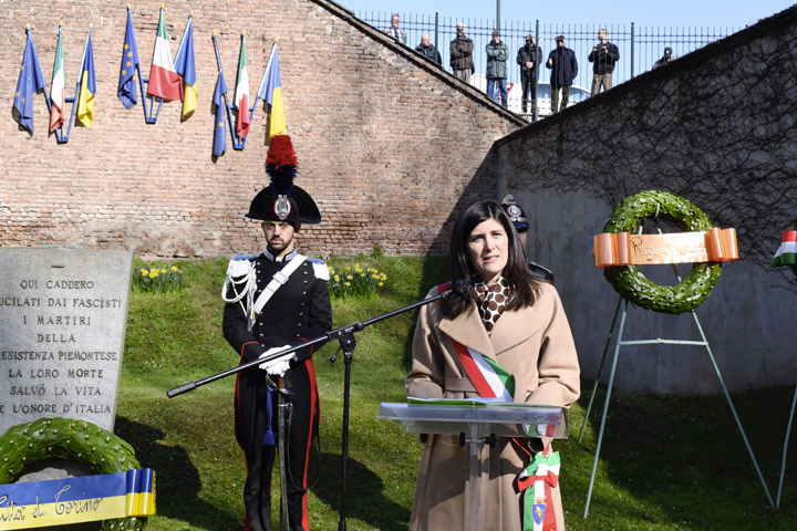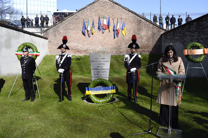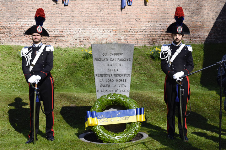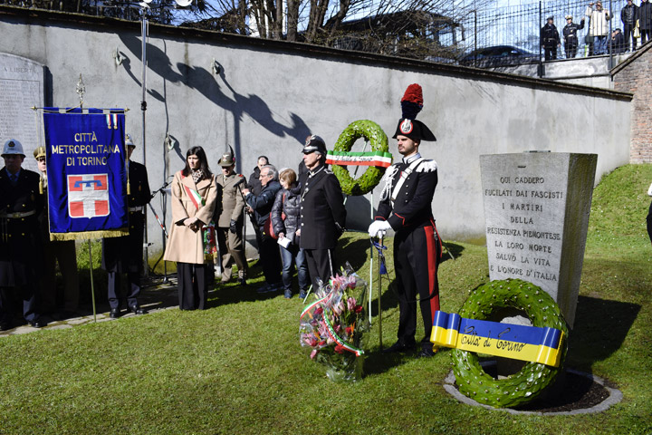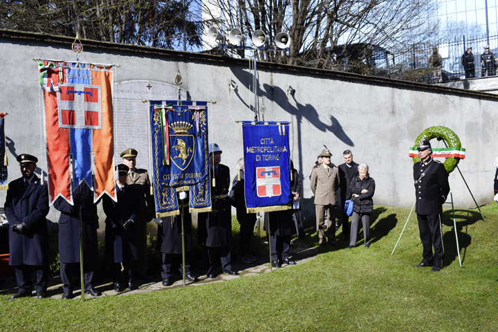 Davanti alla grande lapide dedicata “Ai nuovi martiri della libertà ” hanno preso parte alla cerimonia commemorativa: la sindaca Chiara Appendino, il governatore della Regione Piemonte Sergio Chiamparino, il vicepresidente del Consiglio regionale, Nino Boeti, le autorità civili, militari e delegazioni delle associazioni della Resistenza. Presenti anche il Gonfalone della Città di Torino, decorato di medaglia d’oro al valor militare e la Banda dei Vigili Urbani.