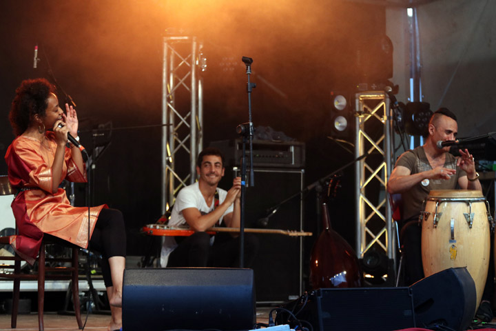 La serata è stata aperta dalla cantante italo-sudanese Amira Kheir, la “Diva del deserto sudanese” che mescolando l’eredità musicale del Sudan al blues sahariano e al jazz ha incantato il pubblico di tutto il mondo.