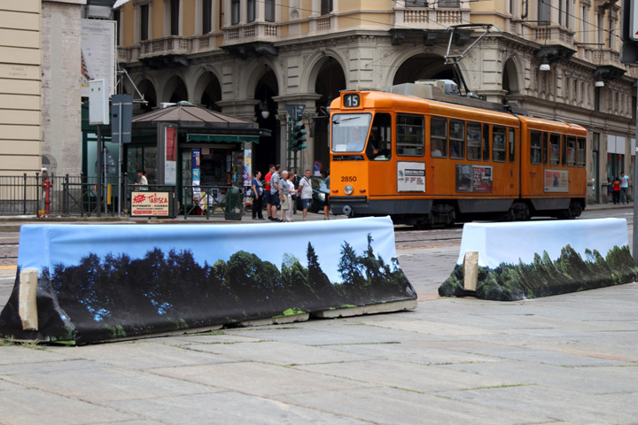 La soluzione elaborata eviterà l’intervento cromatico diretto sulla superficie di cemento che sarà prodotto attraverso una copertura applicabile rimovibile in Pvc che aderisce perfettamente alla forma delle barriere.