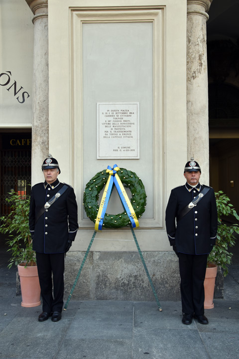 In Piazza San Carlo, al civico 161, si è svolta la Cerimonia di commemorazione dei Caduti torinesi che perirono durante i moti del 21-22 settembre 1864, contro il trasferimento della capitale a Firenze. A rappresentare la città il consigliere comunale Fabrizio Ricca.