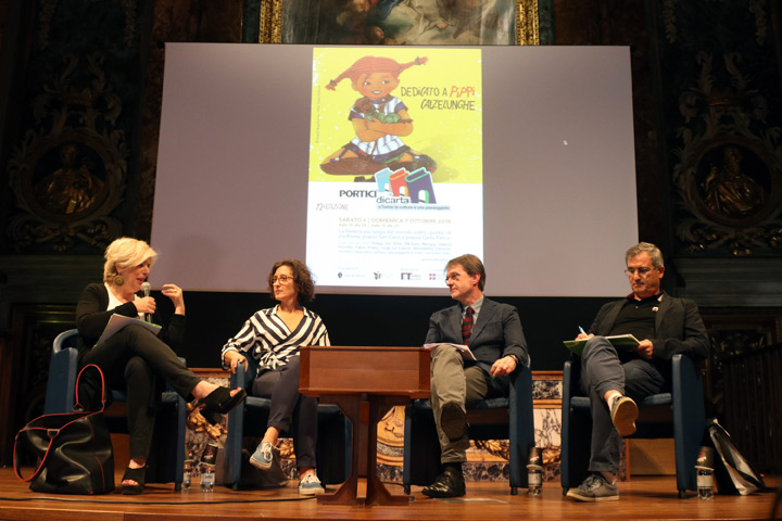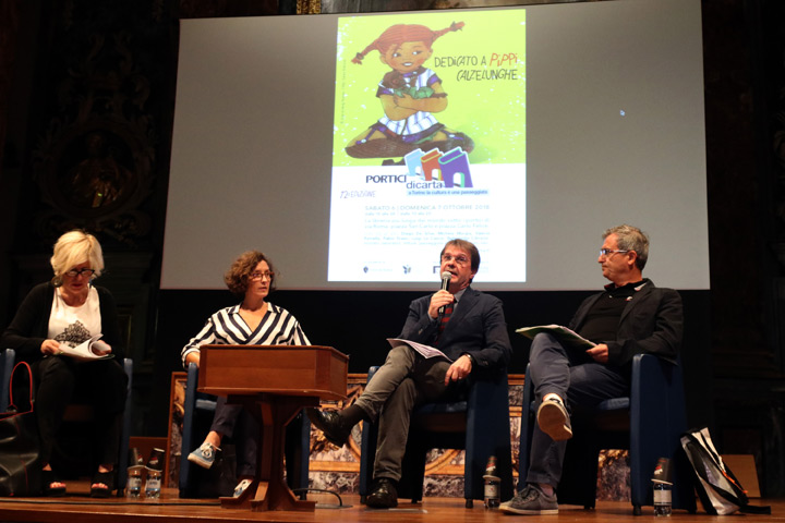 Portici di Carta 2018 è stato dedicato a Pippi Calzelunghe, personaggio rivoluzionario nato dalla penna di Astrid Lindgren, edito per la prima volta in Italia sessant’anni fa: un’icona in grado di valicare i confini della letteratura per l’infanzia. Per l’occasione, Valeria Parrella terrà – sabato 6 ottobre, ore 18.30, Oratorio San Filippo Neri (via Maria Vittoria 5) – una lezione dal titolo Pippi maestra di femminismo; gli allievi della Scuola ODS (Operatori Doppiaggio e Spettacolo), coordinati da Stefania Giuliani, leggeranno nello Spazio Bambini estratti del libro e, il Dipartimento Educazione Castello di Rivoli, animerà piazza San Carlo con una grande azione di pittura collettiva a lei ispirata.