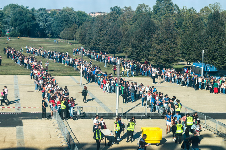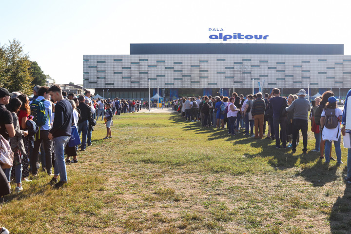 Fin dal primo pomeriggio il palazzetto ha iniziato a riempirsi in attesa del match Italia – Serbia.