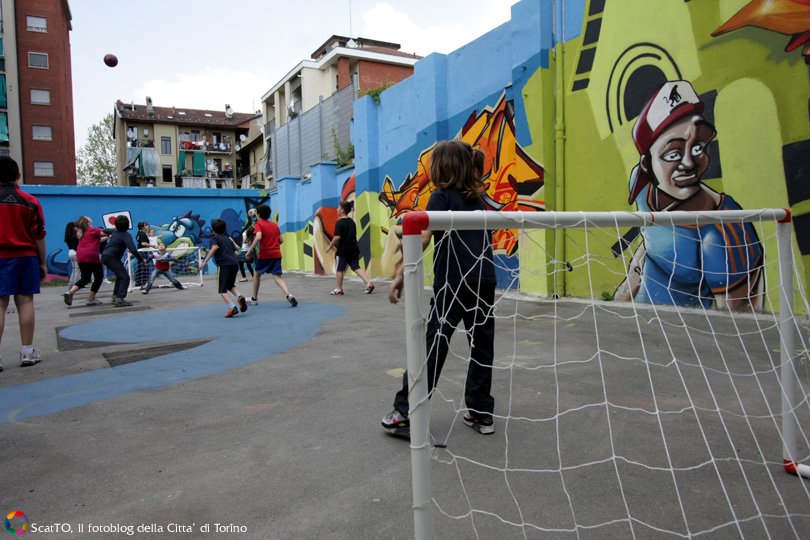 I giardini Spanzotti sono di circa 1100 mq; il classico “giardinetto” con giochi per bambini, che ora avrà un fondale colorato realizzato sui muri perimetrali dal gruppo Monkey’s Evolution, che nel corso dell’estate è stato oggetto di un laboratorio aperto ai ragazzi delle scuole. Eliminata la sosta “selvaggia”, rifatti i giochi e le sedute, ora il giardino è un a tavolozza di colori che invita alla sosta le famiglie e i giovani del quartiere.