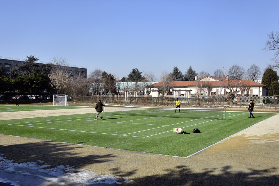 Il lotto (circa 7.000 mq) in questione è racchiuso tra Corso Vercelli 483, il Villaggio Snia, la chiesa ortodossa ed il liceo Giordano Bruno di Via Marinuzzi. Con l’azione 1.10 “Riqualificazione spazi residuali” si è intervenuti restituendo al quartiere, dopo averla pulita, liberata da rifiuti e sterpaglie, un’area sportiva attrezzata dedicata in special modo agli adolescenti, con tavoli e sedute per la sosta alfine di favorirne la socializzazione. In specifico è stato effettuato lo sfalcio del verde, la rimozione delle pavimentazioni e delle strutture esistenti, dei campi da tennis e le porte del campo di calcio, nonché sono state ripristinate le parti danneggiate della recinzione. Le due alte siepi di lauro, potate e ripulite, separano la zona dove ci sono tre piattaforme per giocare a tennis, a calcio e a basket, da quella dove è possibile sedersi ai tavoli e giocare a ping-pong, oppure sfidarsi in tornei di calcio balilla. L’intervento è costato 217mila euro.