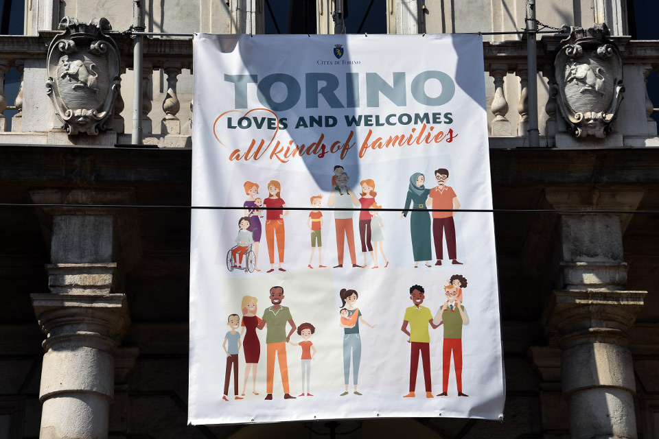 “Da tempo – dichiara la sindaca Chiara Appendino – il Comune di Torino ha deciso di mutare la visione di un unico modello di famiglia pensando a quella pluralista, che riconosce come famiglie le realtà sociali che formano la nostra società. Per questo motivo abbiamo deciso oggi, in contemporanea con la conferenza di Verona, di esporre e confermare ancora una volta la visione della Città di Torino. Qui tutte le famiglie sono benvenute. Nessuna esclusa”.