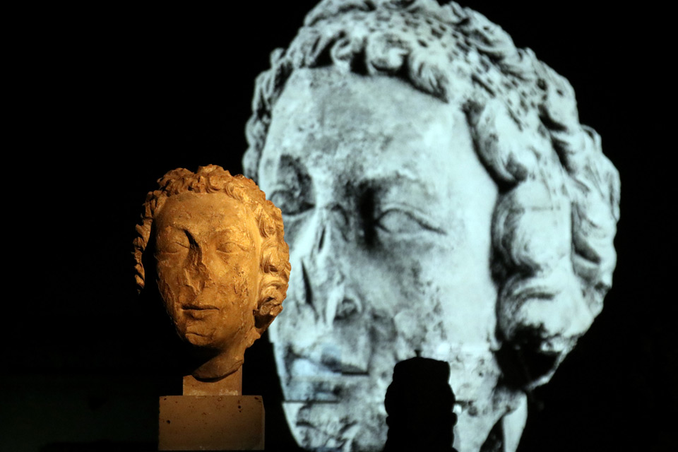 Dal portale dell’Incoronazione della Vergine sulla facciata occidentale proviene la Testa d’Angelo, mentre dal portale del braccio settentrionale del transetto provengono la Testa di Re mago, la Testa di uomo barbuto e la Testa di figura femminile, allegoria di una virtù teologale. Le teste sono presentate con un coinvolgente allestimento audiovisivo che ricrea uno sfondo architettonico e ambientale per le sculture, arricchendo la visita con proiezioni e voci fuori campo che animano i quattro personaggi e ne raccontano la storia.