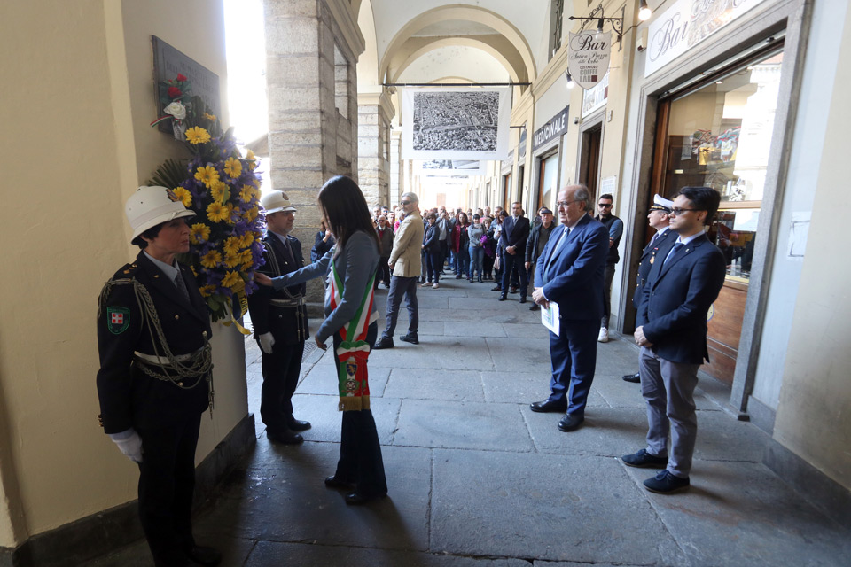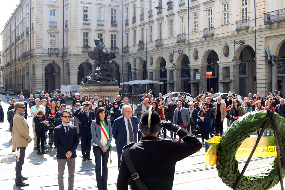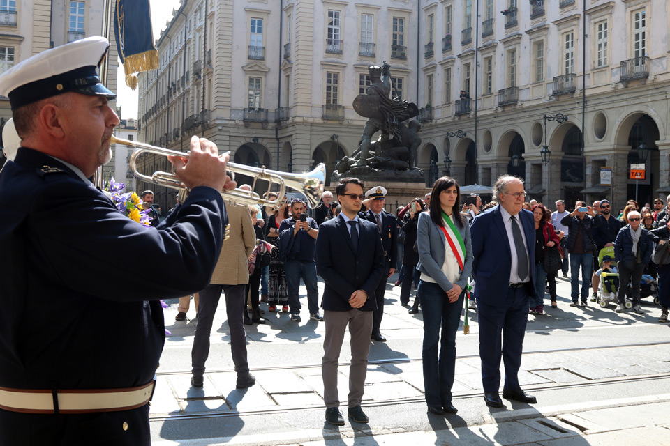 Alla cerimonia sono intervenuti: il presidente Consiglio comunale, Francesco Sicari, il presidente della Federazione Italiana Associazione Partigiani di Torino, Antonio Caputo e la Sindaca Chiara Appendino.