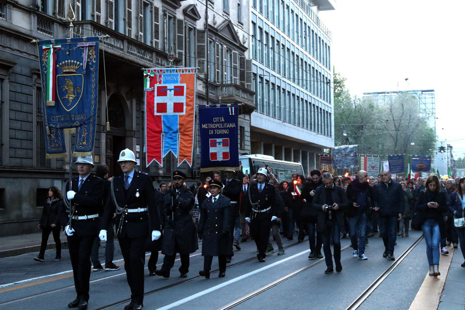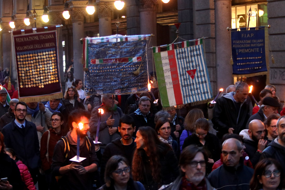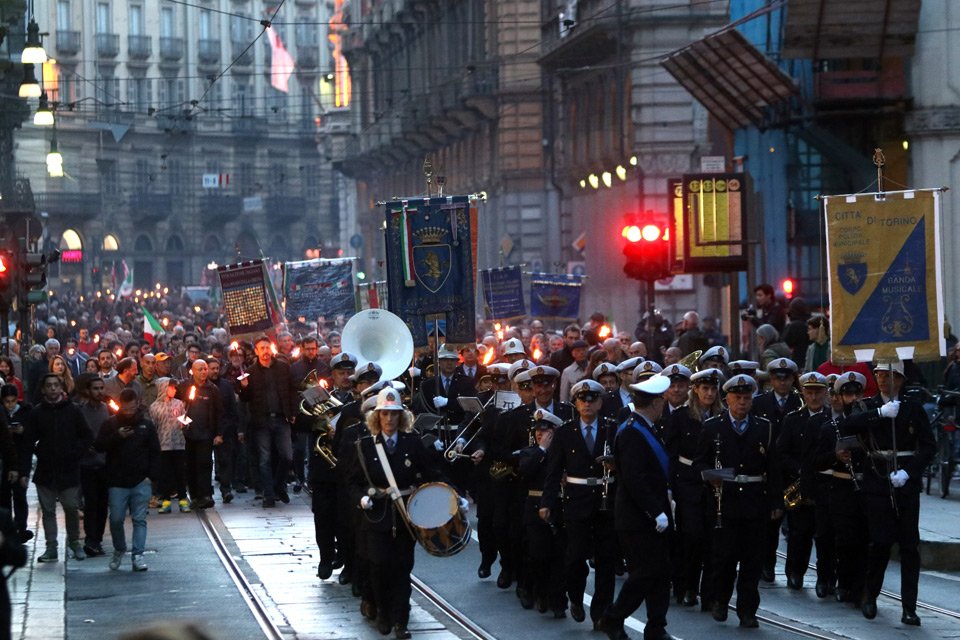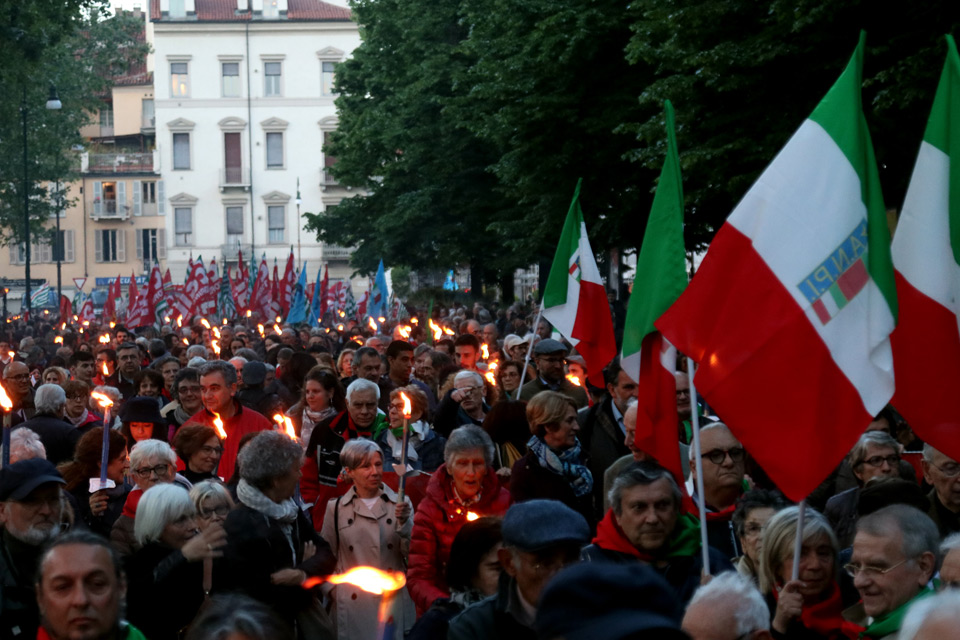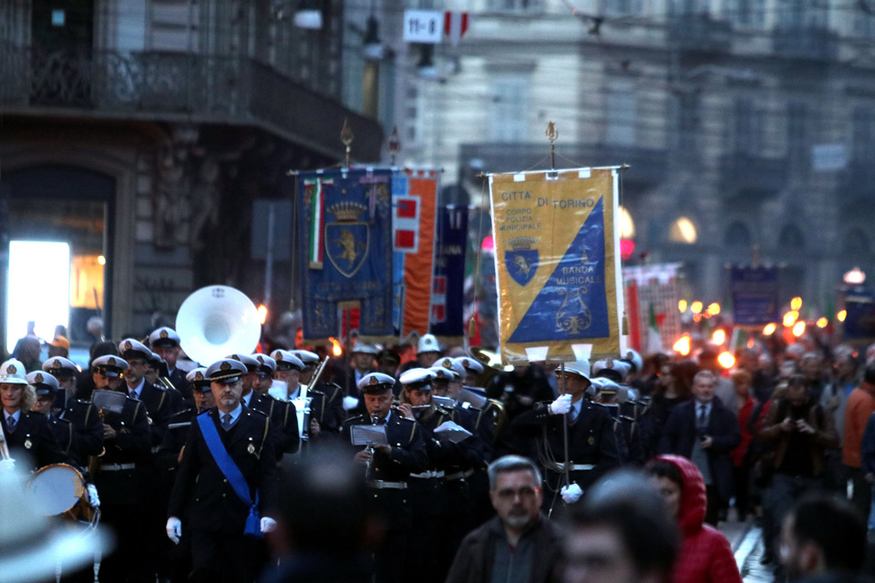 Tradizionale fiaccolata per le vie del centro storico torinese in ricordo della Liberazione.