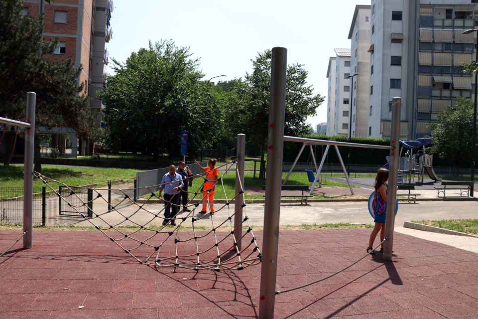 Gli ultimi interventi effettuati per rendere l’area di nuovo fruibile da grandi e piccini: una segnaletica specifica per questo spazio ludico, la riparazione degli arredi presenti e la semina (che verrà completata in autunno) per ottenere un prato sulle superfici limitrofe alle piastre dei giochi.