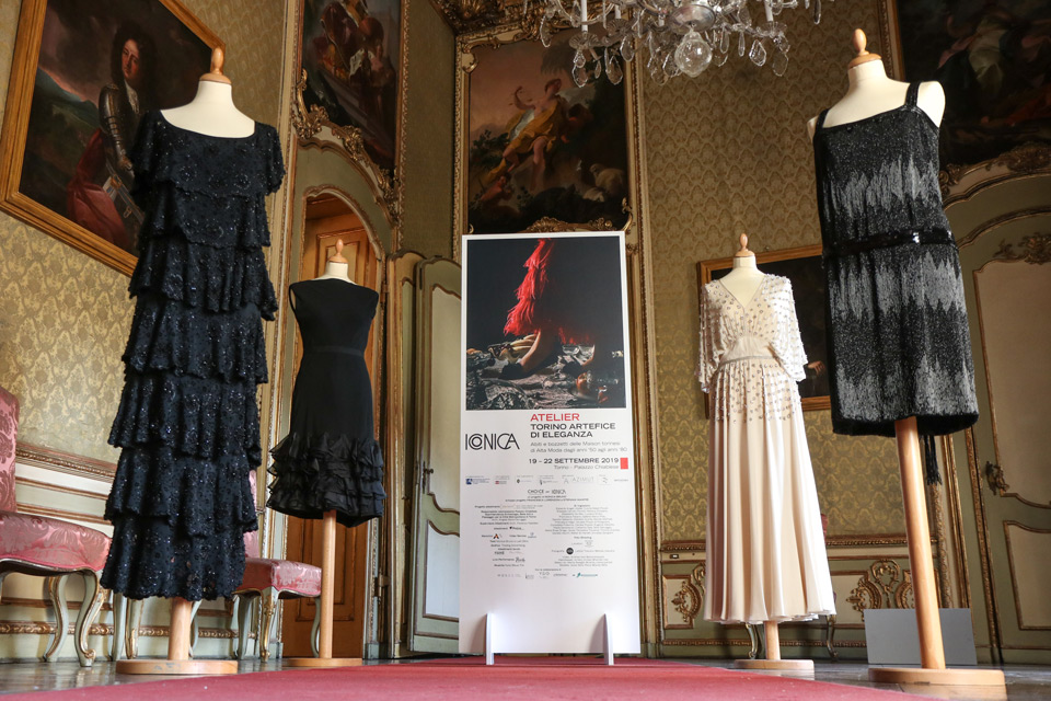 “Gli abiti esposti sono il lampo che ha illuminato qualche istante della vita delle donne che li hanno scelti e indossati. Allo stesso tempo hanno il dono di suscitare in ciascuno di noi ricordi o narrazioni di quell’epoca, una passeggiata nel tempo lungo la quale risuonano luoghi, profumi e colori che rivelano la fantasia e l’estro dei creatori di moda, la grande professionalità delle sarte e delle modiste, il legame dialettico tra gli eventi di massa e quelli riservati a una élite – spiega la curatrice, Monica Bruno –. Abiti che raccontano una storia, innescano suggestioni, sono testimoni di un divenire storico che ci appartiene ed è per questo che è necessario esporli per far si che diventino patrimonio di tutti –. Anche la scelta del luogo dov’è stato realizzato lo shooting fotografico, Passamaneria Massia, mette al centro l’eccellenza del ‘saper fare’ – continua Monica Bruno –. Si tratta infatti di un’azienda storica del territorio che ha saputo proiettarsi nel mondo moderno. Allo stesso modo Iconica 2019 vuole recuperare l’altissimo livello degli anni ‘50 – ‘80, quando Torino era capitale della moda e comunicava direttamente con Parigi, e raccontarlo con un servizio fotografico realizzato con creatività , tecnica e professionalità .  I capi fotografati sembrano usciti da una sfilata dei giorni nostri, in realtà provengono dagli armadi di collezioni private o dagli archivi delle Maison”.