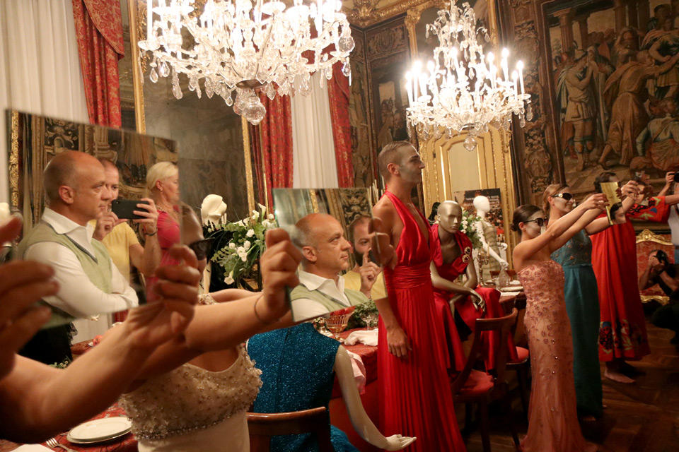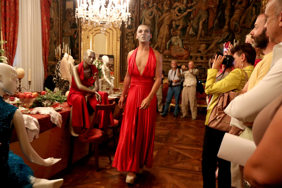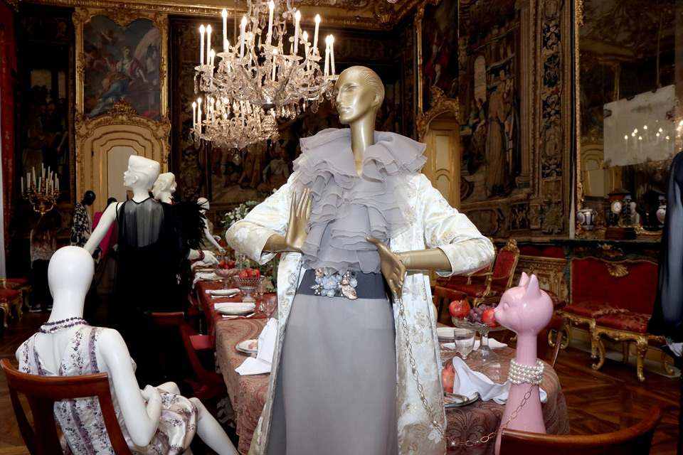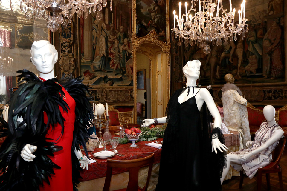“L’immagine guida della rassegna è una donna che cammina su una tavola imbandita al termine di un pranzo di festa – racconta Monica Bruno –. I colori scuri, i tagli di luce caravaggeschi riportano alle atmosfere barocche e oniriche. Una tavola apparecchiata e sospesa nel tempo, come i grandi balli importanti che venivano organizzati in città , di cui io subisco particolarmente il fascino. Dai balli del secolo, generalmente in maschera e a tema, ho preso lo spunto per l’allestimento della sale. Gli abiti per questi eventi mondani spesso venivano disegnati da grandi stilisti. La mostra, che si articola in 8 sale, parte in modo didascalico raccontando le origini di Torino capitale della moda e illustra il rapporto dei grandi atelier con le Maison internazionali – spiega la curatrice -. L’esplosione avviene nella Sala degli Arazzi, la quarta del percorso, dove sarà allestita una tavola da pranzo onirica, nel tempo e fuori dal tempo, sopra la quale, con l’aiuto Fanè Vintage Decorations e Pane e Tulipani Emporio Floreale, abbiamo deciso di appoggiare stoviglie vintage, fiori, frutta, animali, centrotavola e tant’altro con la volontà di riprodurre una tavola da sogno a tema e tipica delle grandi feste ma che allo stesso tempo fosse anche contemporanea. Intorno ci saranno 13 manichini alcuni seduti altri in piedi, tutti in abbigliamento sartoriale sospesi nel tempo, più un gatto inserito per i più superstiziosi ”.