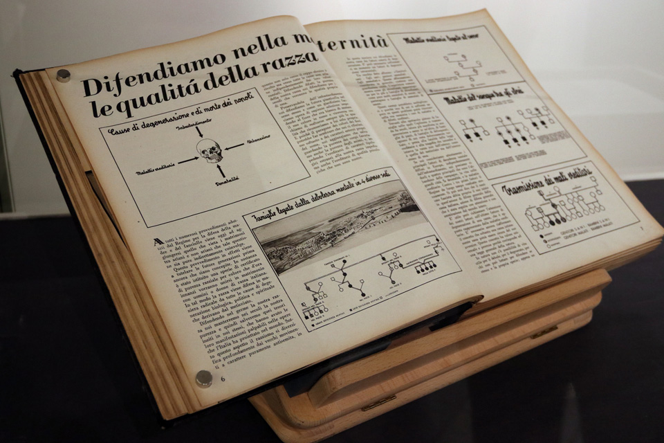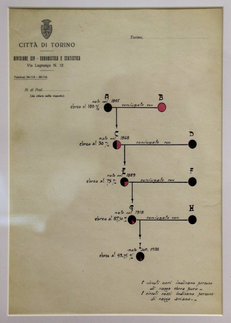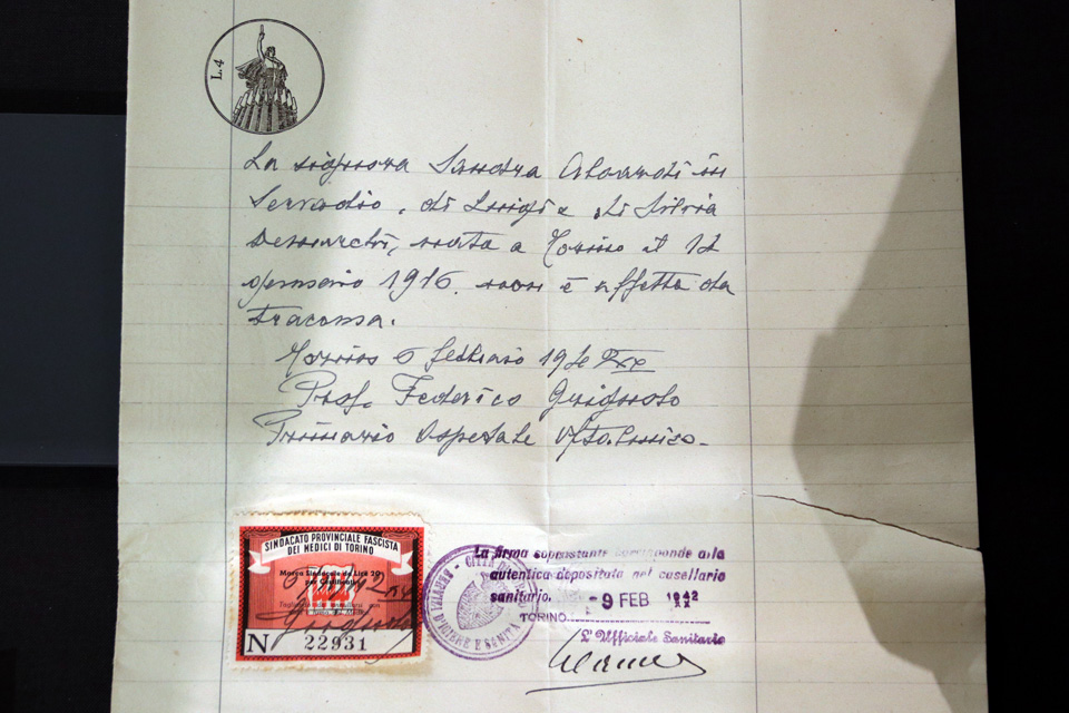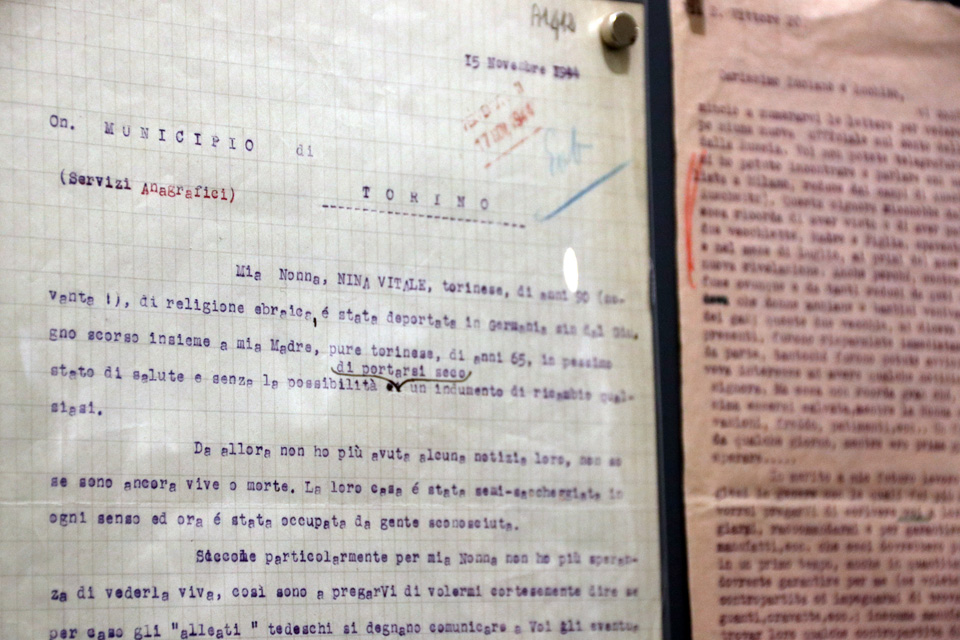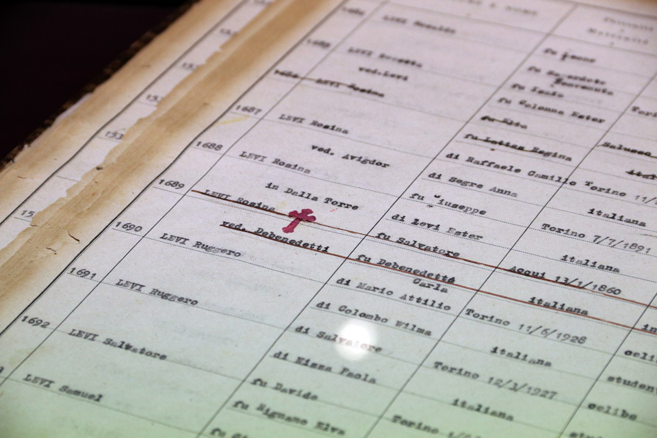 Accanto alle missive spiccano le copertine color granata delle Rubriche di appartenenza alla razza ebraica di Torino, gli elenchi della vergogna, compilate dal Comune in seguito all’entrata in vigore delle leggi razziali del 1938, il primo passo verso la deportazione e il volume dei Discriminati, gli scampati alle persecuzioni perché figli di almeno un cattolico o per meriti particolari. E poi molti oggetti delle vita quotidiani della famiglia Servadio, tra cui un libro di preghiera, in lingua ebraica, sul quale la famiglia dal 1700 appuntava le nascite e i decessi dei congiunti.
