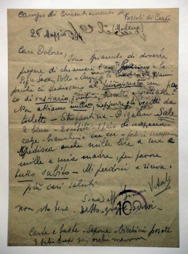 Saranno presentate al pubblico le riproduzioni di otto epistole di Gemma inviate dall’inferno di Fossoli e giunte miracolosamente a destinazione. Sono invocazioni di aiuto indirizzate a parenti e amici: richieste di cibo, vestiti, medicine, ma anche occhiali e filo per cucire. Oggi le lettere originali sono conservate al Museo Nazionale dell’Olocausto di Washington.