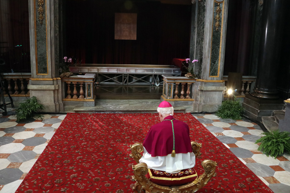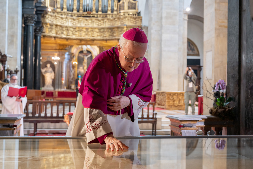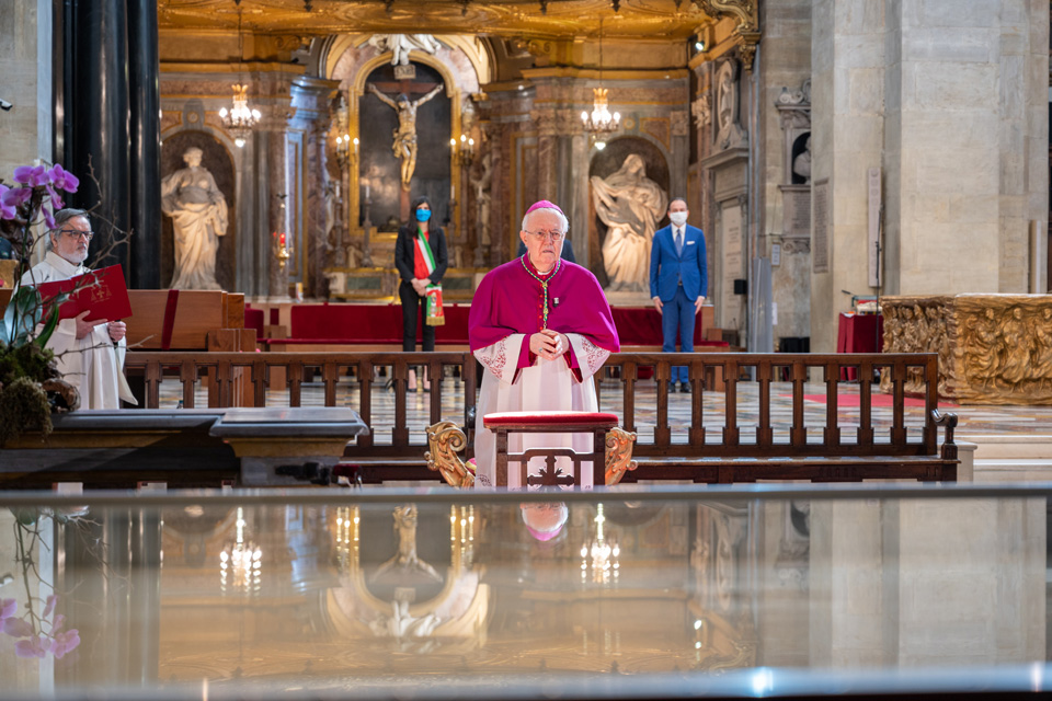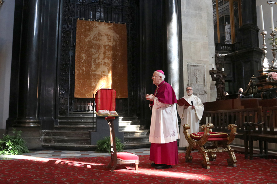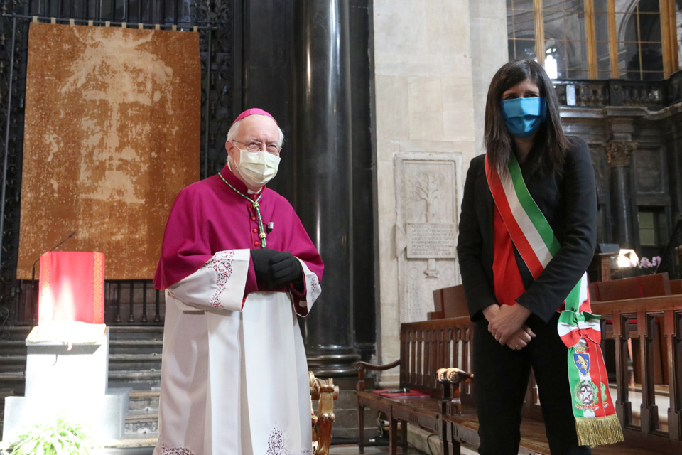 Dalla cappella della Cattedrale di Torino dove il Telo è custodito, l’arcivescovo di Torino e vescovo di Susa, mons. Cesare Nosiglia, ha guidato davanti alla Sindone una liturgia di preghiera e contemplazione trasmessa in diretta sui social della CittĂ di Torino, della Regione Piemonte, della Diocesi di Torino e dell’Ufficio per la Pastorale dei Giovani e dei Ragazzi – Arcidiocesi di Torino.