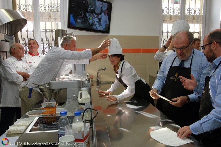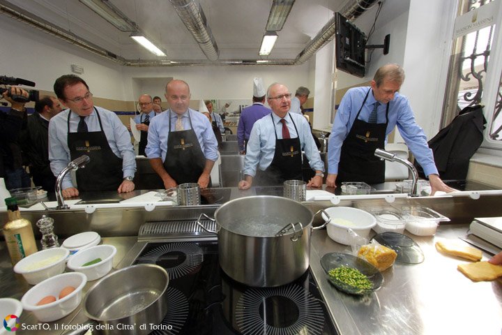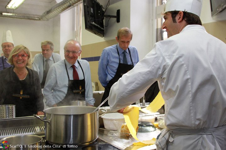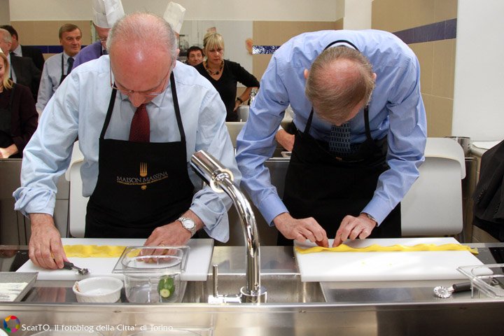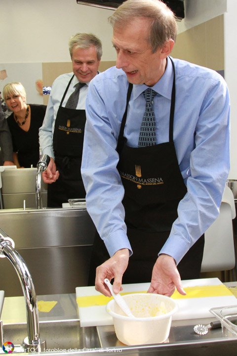All’opera con tanto di “divise d’ordinanza”, il sindaco Piero Fassino si è cimentato con i Fagottelli Pergola, ravioli ripieni di carbonara liquida. Insieme a lui, fra gli altri, il presidente della Provincia Antonio Saitta e il Sottosegretario alle Infrastrutture e Trasporti, Bartolomeo Giachino.