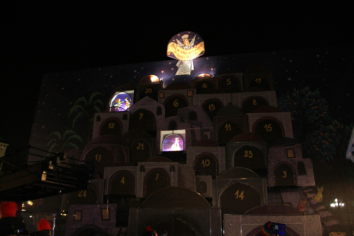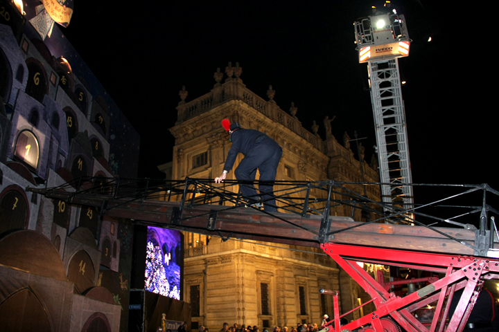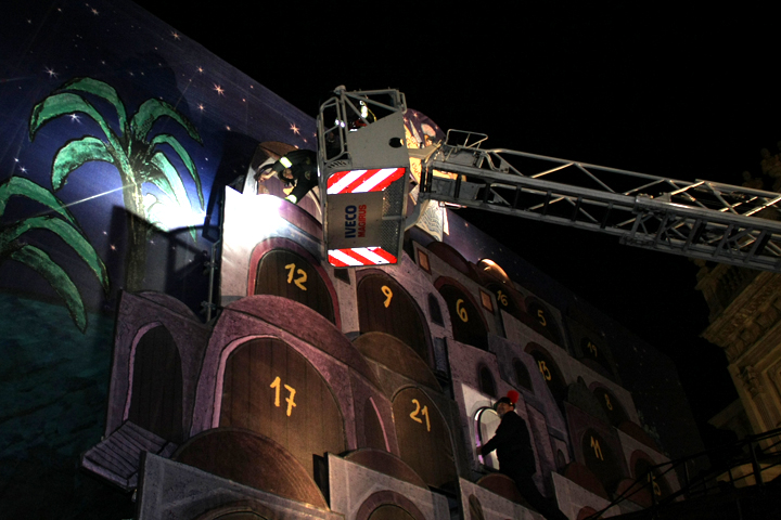 Le opere possono essere ammirate in piazza Castello dove, sera dopo sera, un vigile del Fuoco aprirà ognuna delle 25 finestrelle che segnano l’arrivo del Natale.