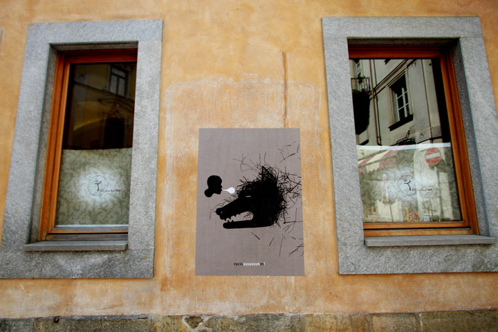 Le opere affisse direttamente sulle facciate dei palazzi del quartiere sono il progetto che consiste nell’utilizzare i muri delle strade del Quadrilatero inventando una “galleria all’aperto” in cui presentare manifesti rivolti a quanti abitano e popolano le sue vie, di giorno e di notte.