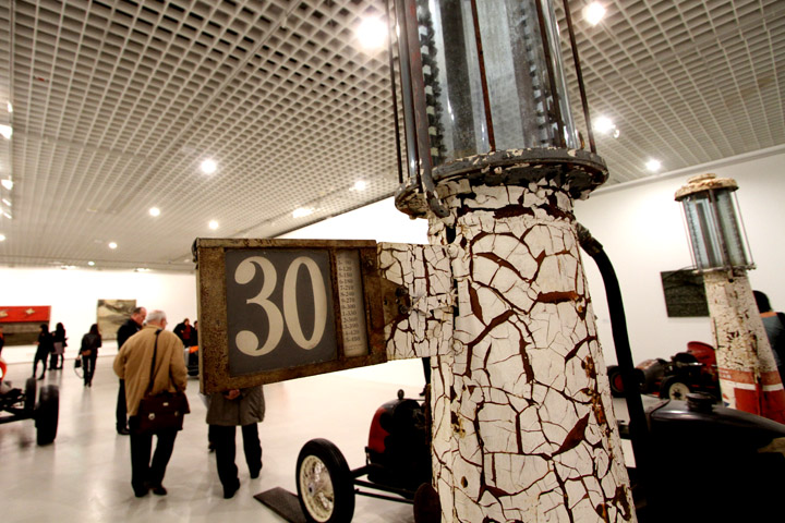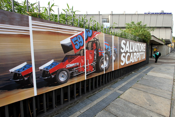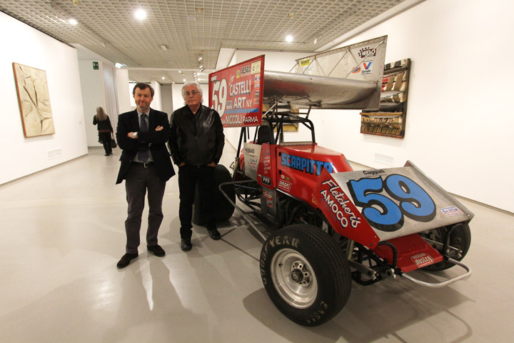La mostra si concentrerà in prevalenza sulle opere degli anni Cinquanta e Sessanta, con un’ampia sezione dedicata ai lavori realizzati con fasce o bende e tecnica mista, alcune tele estroflesse dipinte che testimoniano la tensione a sconfinare fuori dallo spazio pittorico a favore di una resa plastica e tridimensionale. A conclusione del percorso saranno esposte alcune opere realizzate negli Stati Uniti negli anni Ottanta, in cui torna l’apertura di Scarpitta verso l’utilizzo di nuove tecniche e materiali, con l’inclusione di legno e oggetti come slitte. L’energia e il movimento che caratterizzano la produzione di Scarpitta sono ravvisabili in parallelo nella sua passione, mai estinta, per le corse automobilistiche alle quali spesso partecipava. Un’intera sezione della mostra sarà dedicata alle autovetture da lui realizzate, opere capaci di fare rivivere l’atmosfera del mondo dei circuiti della periferia americana e di portare l’arte in un contesto nuovo, diverso ed affascinante.