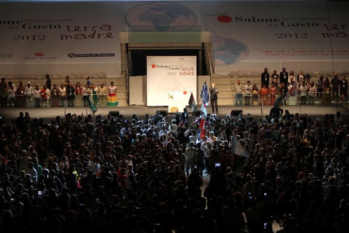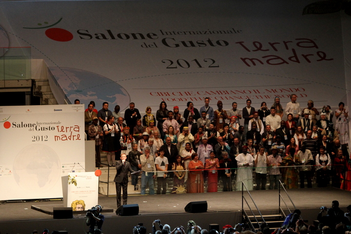 La cerimonia si è conlcusa con l’intervento di Carlo Petrini, presidente di Slow Food e lo spettacolo musicale di Roy Paci, che ha diretto l’Ensemble Terra Madre in prima assoluta.