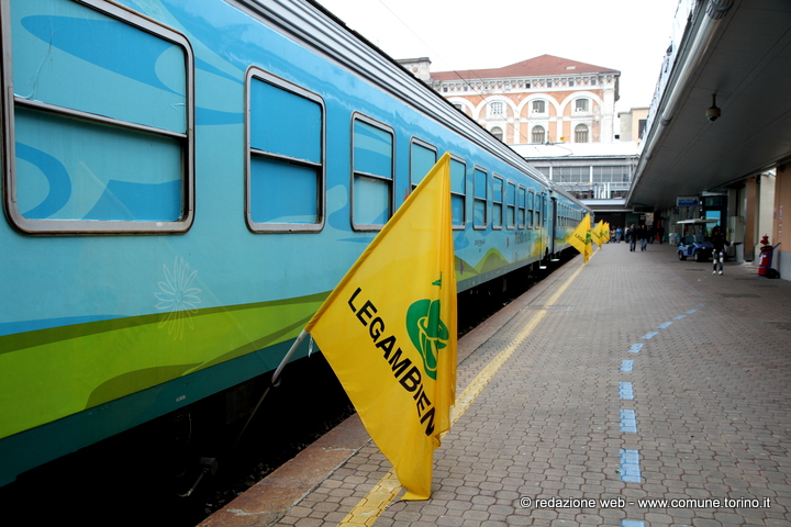 Il Treno di Legambiente è partito da Bari l’8 marzo e ha toccato Reggio Calabria, Salerno, Roma, Firenze, Bologna e Milano prima di approdare a Torino. Il convoglio ambientalista sosterà nella Stazione di Porta Nuova (Binario 1) fino a venerdì 12 aprile. Le carrozze, allestite con mostre e percorsi didattici, oltre alle scuole prenotate, saranno aperte ai cittadini e curiosi dalle 16 alle 19 di mercoledì e giovedì. Gli organizzatori hanno definito il treno una “smart city su rotaie”.
