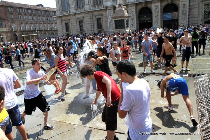 12 giugno, ultimo giorno di scuola e, come da tradizione, gli studenti si sono dati appuntamento in centro intorno alle fontane di Piazza Castello.