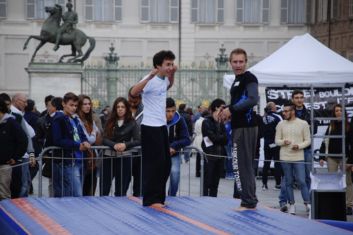Una mostra fotografica delle passate edizioni; una pedana per lo skateboard; una parete per il free-climbing; freesbee a squadre e altro ancora per una giornata che non ha fatto mancare ai torinesi l’immagine del benessere dettato dall’entusiasmo per le diverse discipline e attività che si sono svolte dinnanzi all’ingresso del Palazzo Reale.