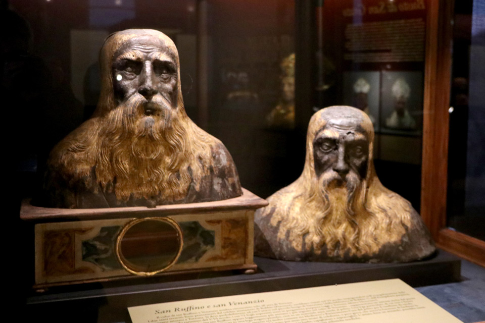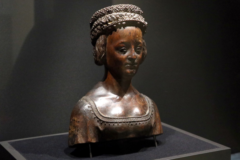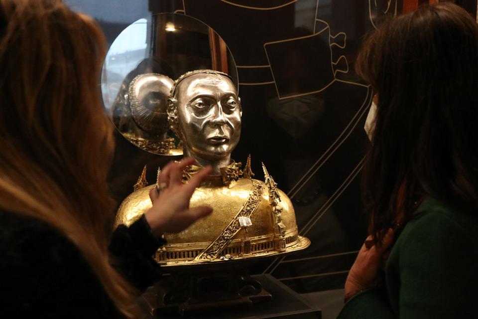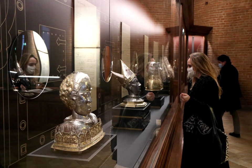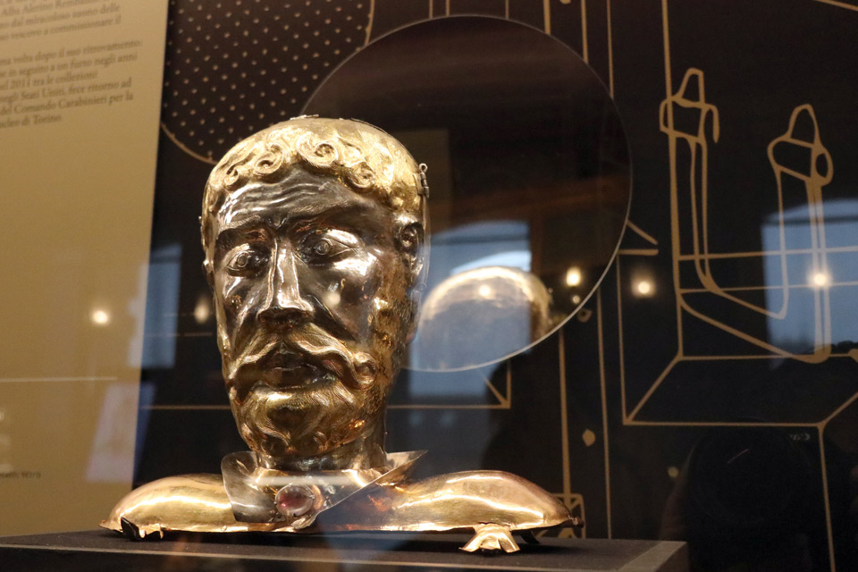 Documentati già dall’XI secolo per contenere la reliquia del cranio di certi santi, i busti sono a tutti gli effetti dei ritratti in oreficeria, solitamente in rame o in argento dorato, spesso arricchiti da pietre preziose, vetri colorati e smalti. Una produzione specificatamente medievale, in cui convivono il gusto per il ritratto di tradizione classica – di qui la presenza di dettagli relativi all’acconciatura o all’abbigliamento – e le pratiche devozionali teorizzate da alcuni ecclesiastici e filosofi del XII secolo, secondo cui la contemplazione dell’immagine di un santo, realizzata con materiali preziosi, poteva condurre il fedele verso l’elevazione spirituale. I busti e le teste reliquiario si configurano quindi come opere di valenza doppia: sia opere d’arte sia ricettacolo delle reliquie dei santi che rappresentano e in quanto tali oggetto della venerazione dei fedeli. Il Piemonte e l’area alpina contano un numero molto elevato di queste testimonianze per il periodo XII-XVI secolo, soprattutto in rapporto alle altre regioni d’Italia. La mostra vuole documentare questa ricchezza, anche stilistica, cercando di comprendere le ragioni del successo di questa tipologia nel nostro territorio.