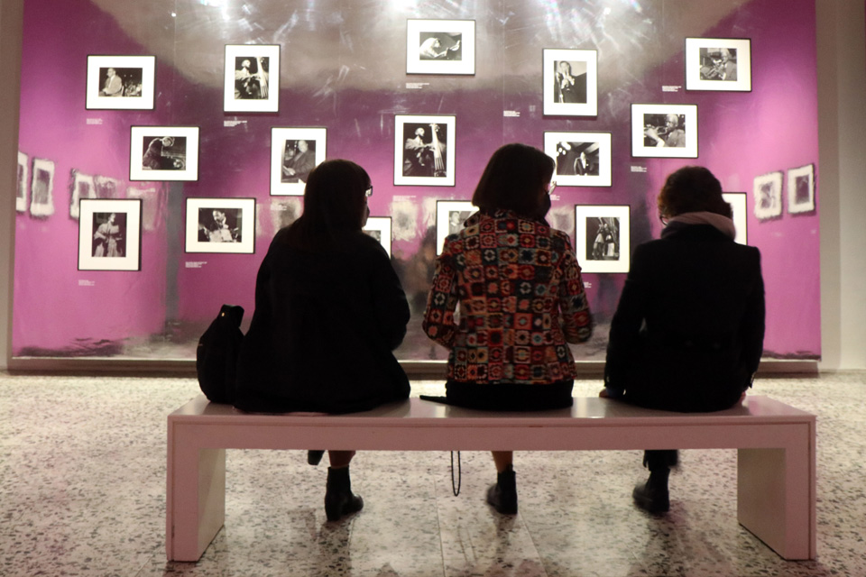 Il percorso di mostra prende avvio in Francia, dove Model inizia a fotografare negli anni Trenta grazie agli insegnamenti della sorella Olga. In questo periodo realizza Promenade des Anglais, una delle sue serie più note, dedicata alla borghesia pigra e decadente che passa l’estate in villeggiatura a Nizza, e racconta la vita dei parigini che trascorrono le loro giornate fra le strade della città. Dopo il trasferimento negli Stati Uniti inizia sistematicamente a fotografare gli abitanti di New York con uno sguardo sprezzante e ironico, realizzando alcune delle sue immagini più iconiche. In mostra, tuttavia, saranno presenti anche progetti meno conosciuti, come il reportage dedicato alla Lighthouse di San Francisco, organizzazione che offre lavoro e assistenza a persone cieche o quello realizzato durante le gare equestri a Belmont Park. La città è presente anche nelle prime serie realizzate subito dopo il suo arrivo: Reflections e Running Legs, dove viene ritratta attraverso i riflessi creati dalle vetrine dei negozi e attraverso le gambe di frenetici passanti. Le merci e gli edifici si fondono e confondono con le persone che passeggiano, in un insieme che è al contempo surreale e documentario. Non mancano ovviamente anche i suggestivi scatti realizzati all’interno dei locali di musica jazz, da lei stessa definiti come luoghi dove ricercare la vera essenza degli Stati Uniti. Fra i personaggi da lei ritratti in questo contesto troviamo alcuni dei grandi di questo genere, come Bunk Johnson, Count Basie, Dizzy Gillespie, Bud Powell, Percy Heath, Chico Hamilton, Ella Fitzgerald e Louis Armstrong.