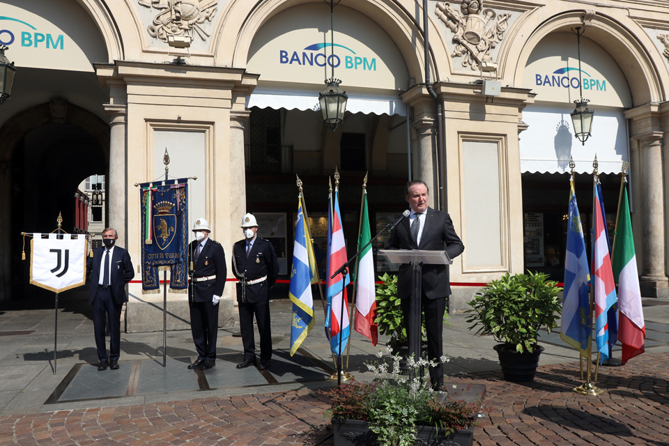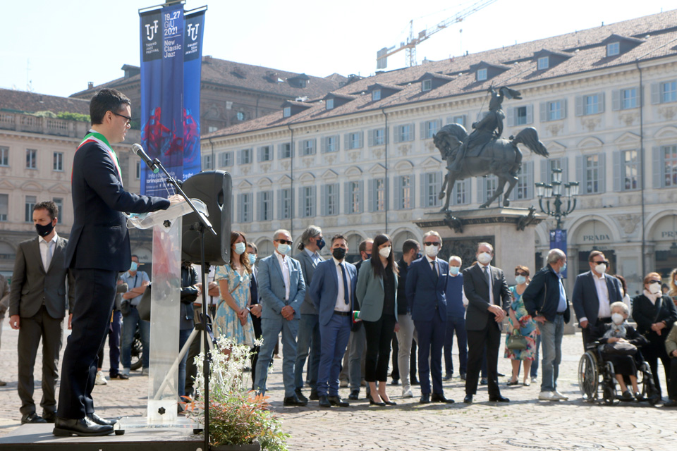 La cerimonia è stata accompagnata dal trombettiere della banda musicale del Corpo di Polizia Municipale della Città di Torino.
