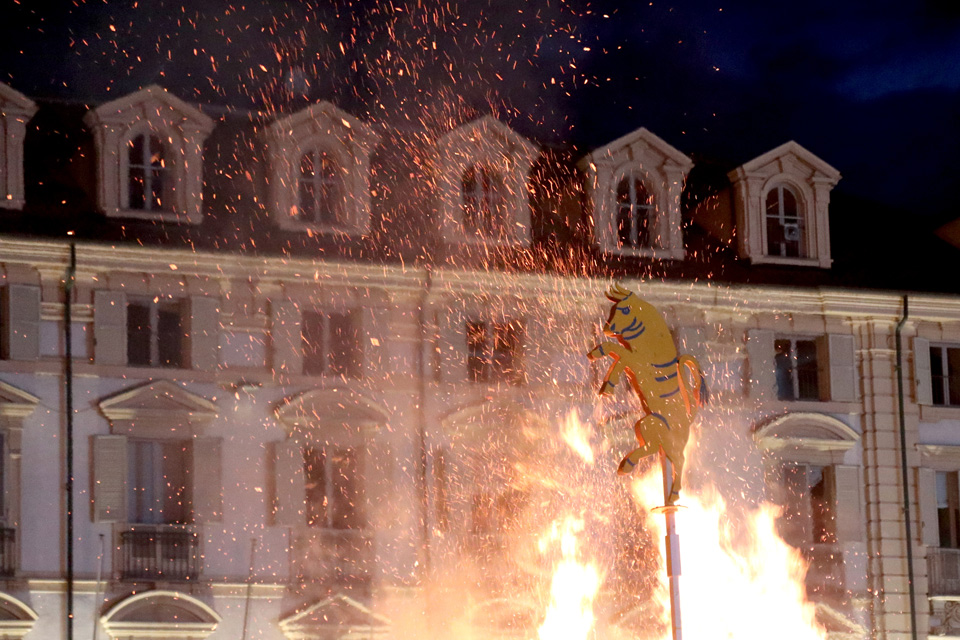 Poco dopo le autorità cittadine hanno appiccato il fuoco alla catasta del Farò.