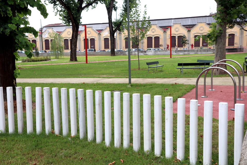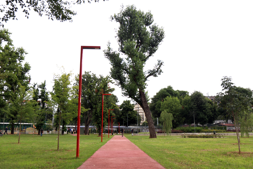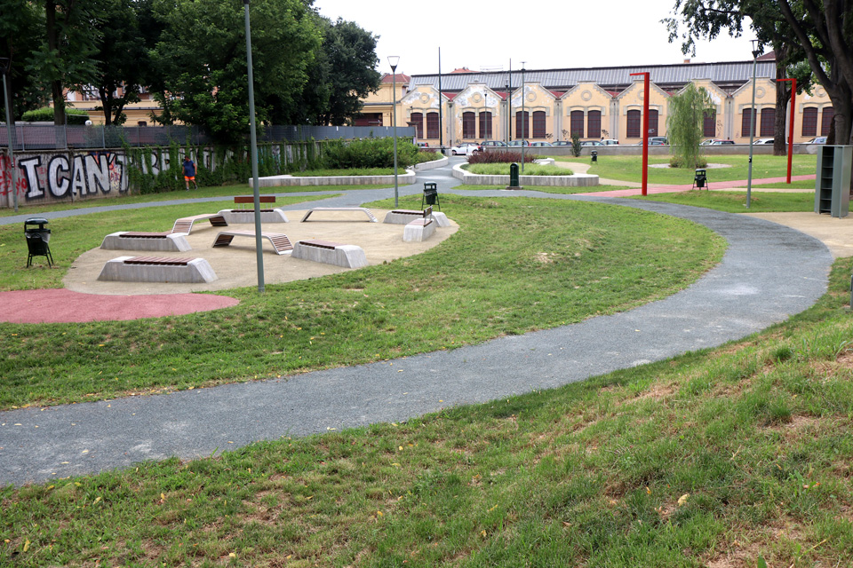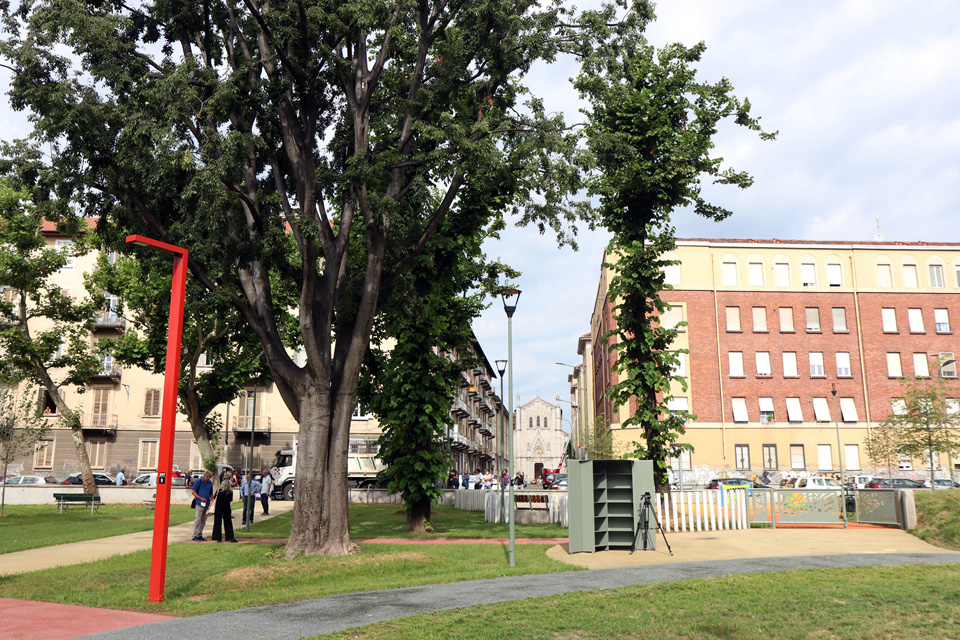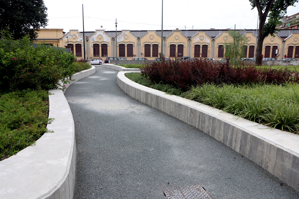 L’area verde comprende 3000 metri quadri di superficie prativa, inframmezzata da nuovi camminamenti realizzati con un’innovativa pavimentazione drenante; un’area di socializzazione costituita da sedute informali in cemento e panchine rotanti che consentono una fruizione flessibile dello spazio, un angolo per la lettura e lo scambio dei libri (bookcrossing) utilizzabile anche come bacheca espositiva, oltre ad una fontanella “toret”.