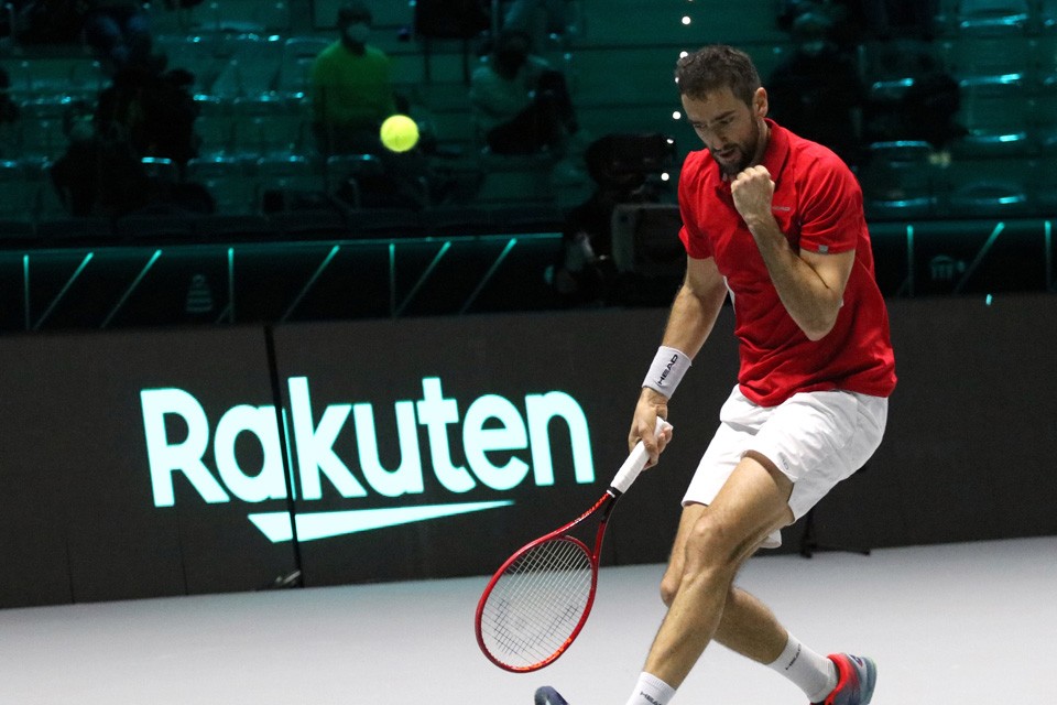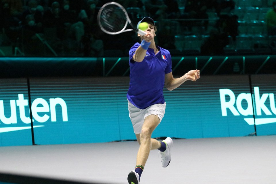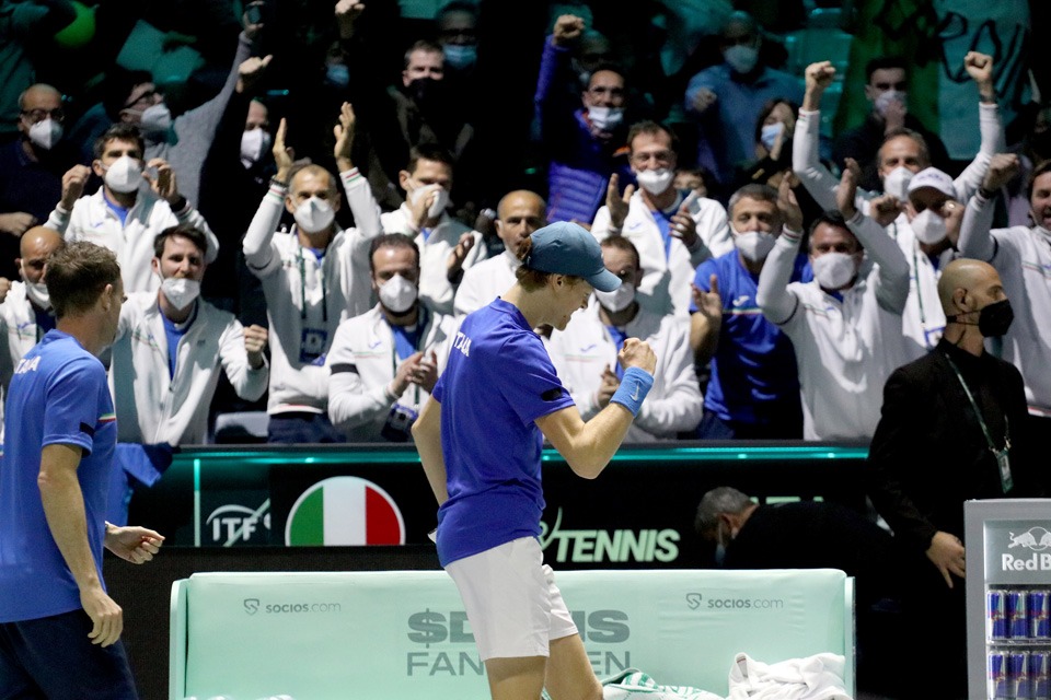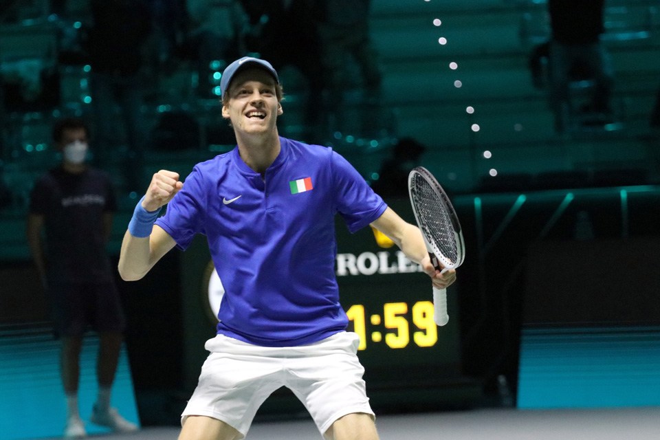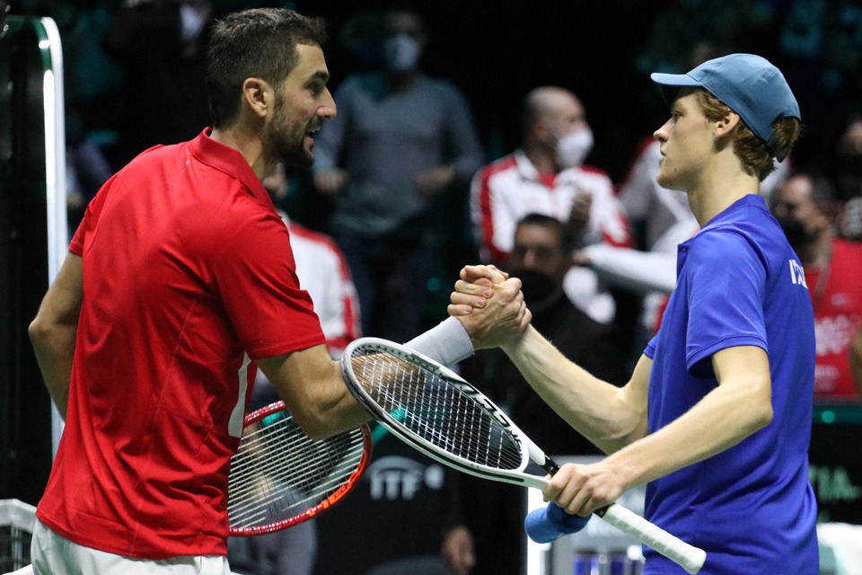 Sinner, nel secondo singolo, ha ridato speranza agli azzurri, che perso il primo set 6-3 e sul 5-4 del secondo sventa un match point per Marin Cilic fino a imporsi per 3-6 7-6 6-3.