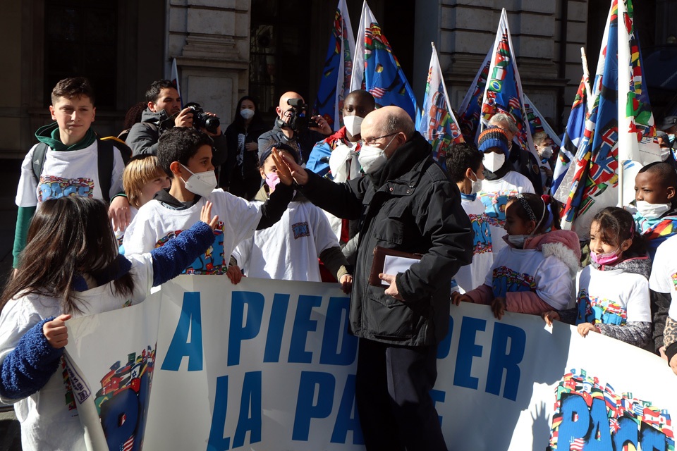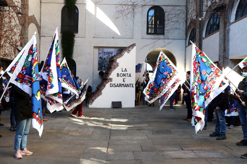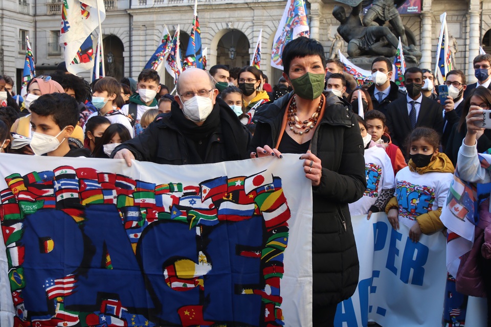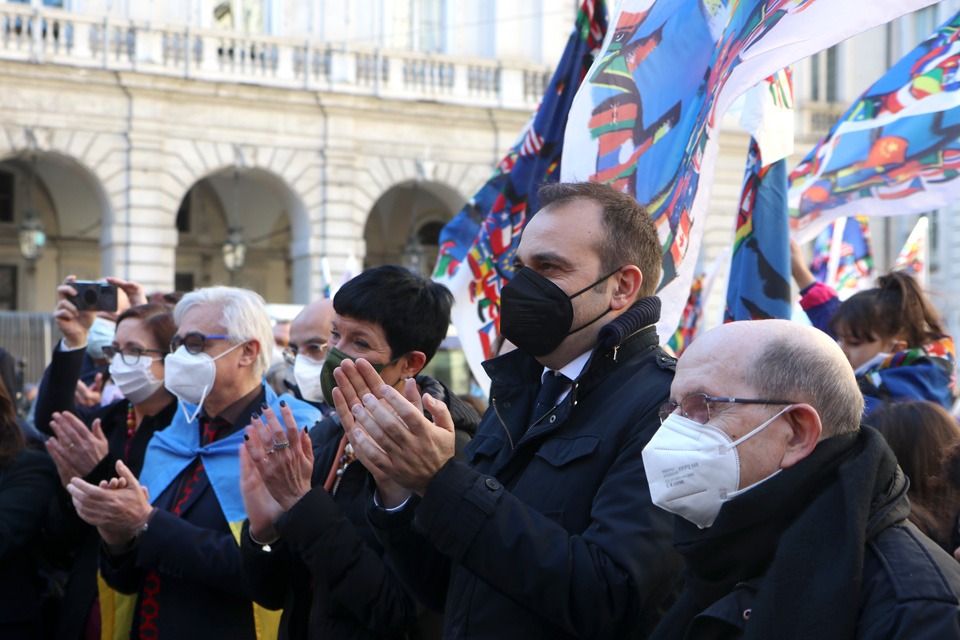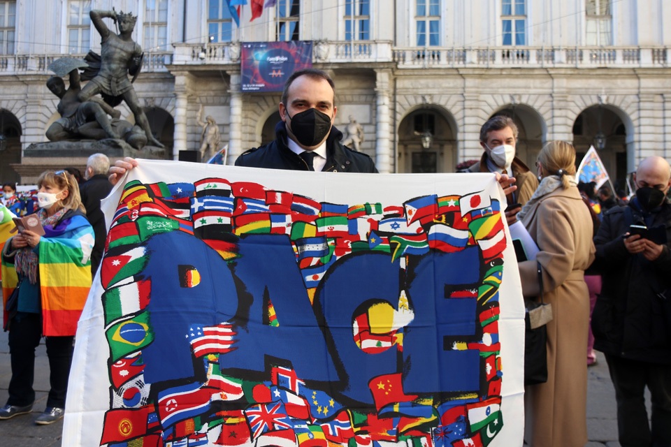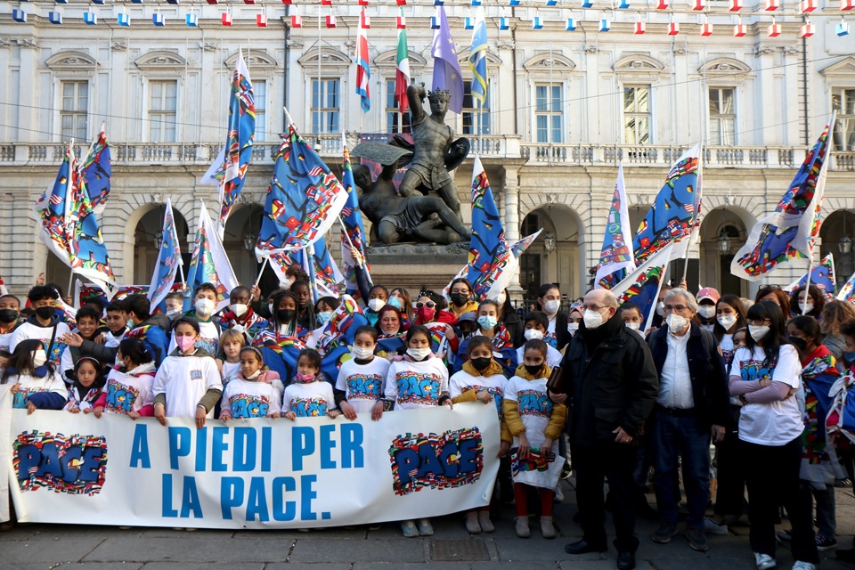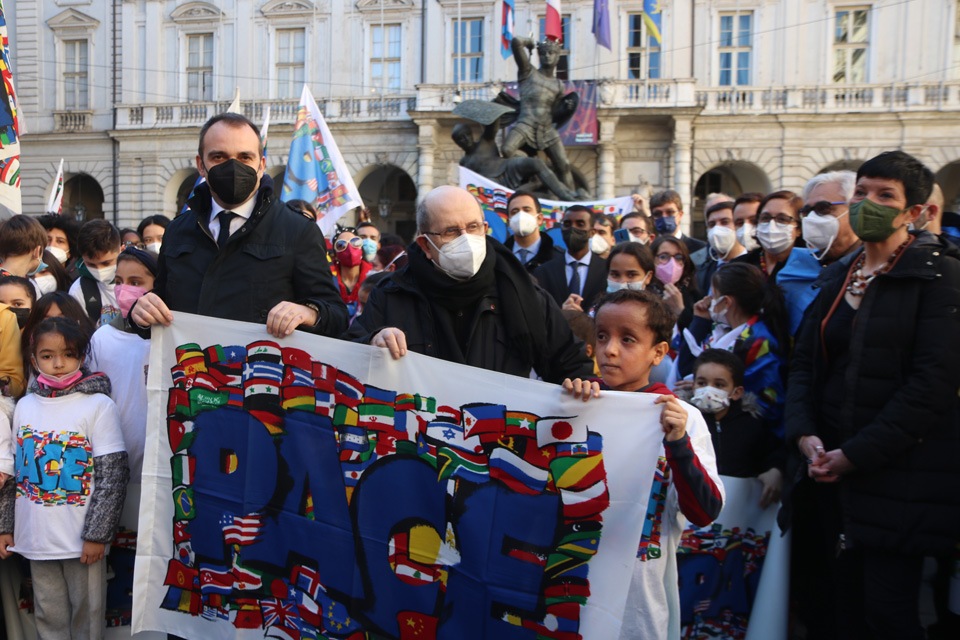 Lunedì 28 febbraio, a Palazzo Civico, la Bandiera della Pace del Sermig è stata consegnata al sindaco Stefano Lo Russo, alla presidente del Consiglio comunale Maria Grazia Grippo e ai capigruppo del Consiglio comunale.