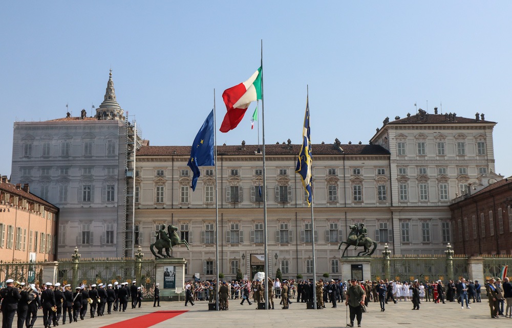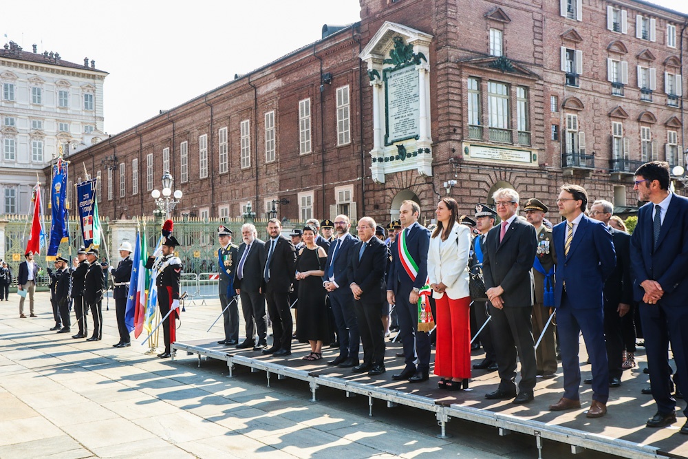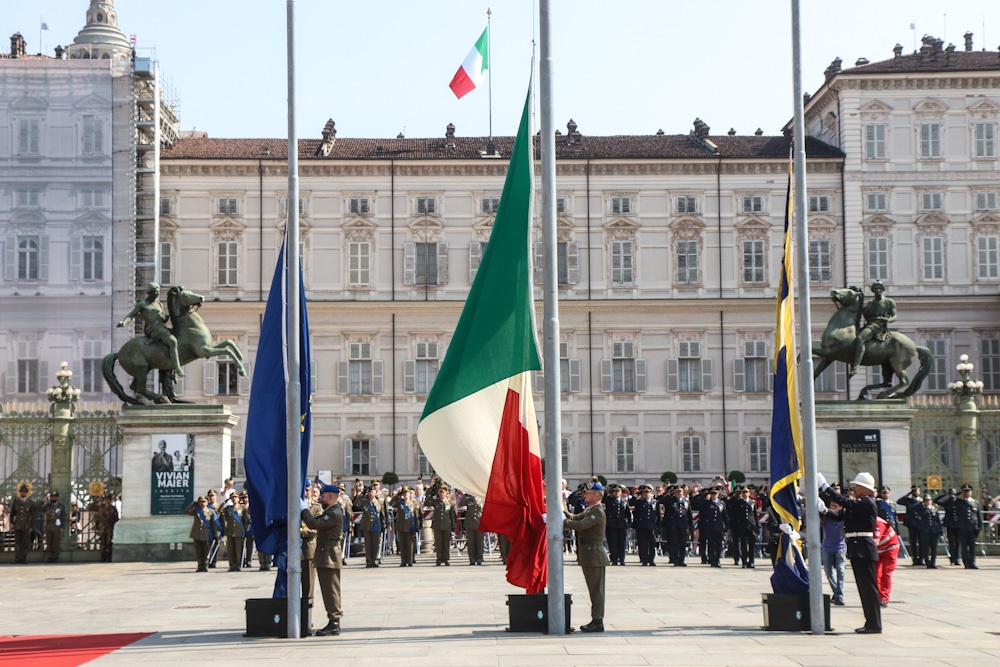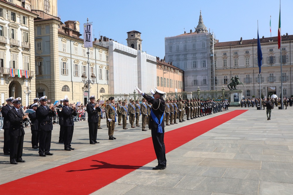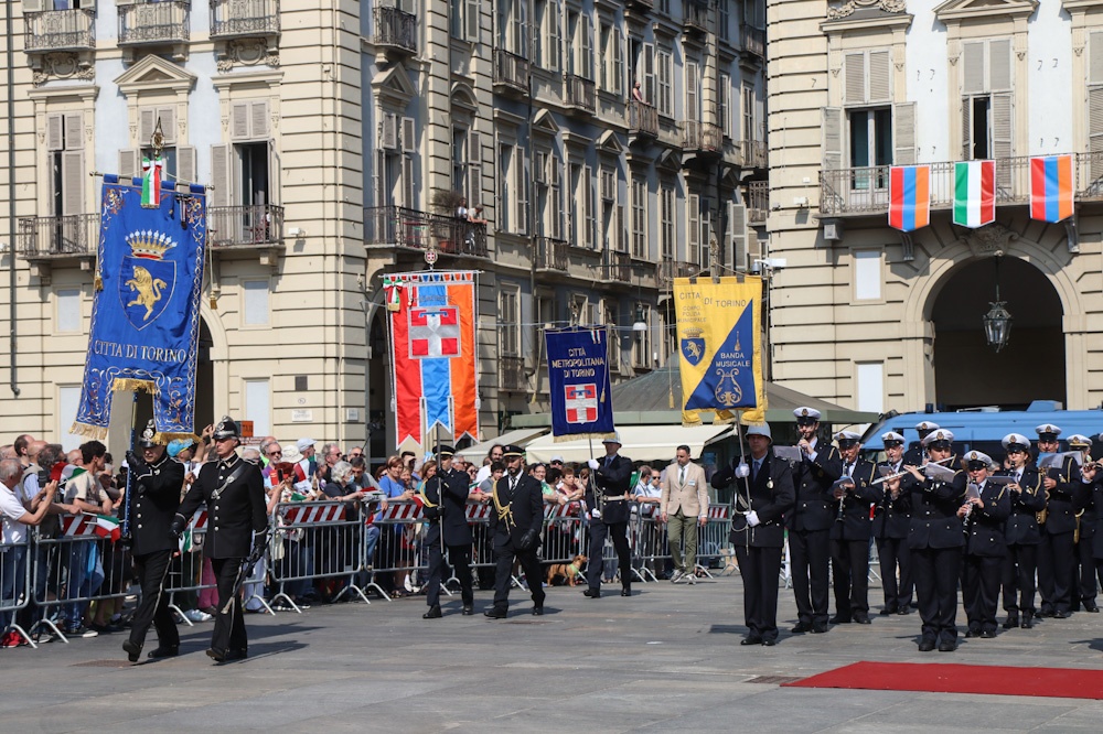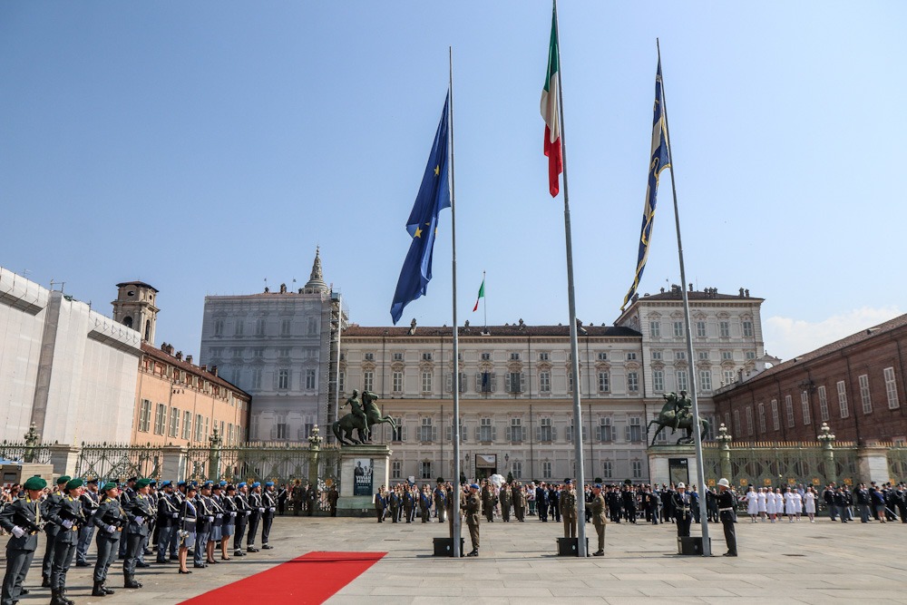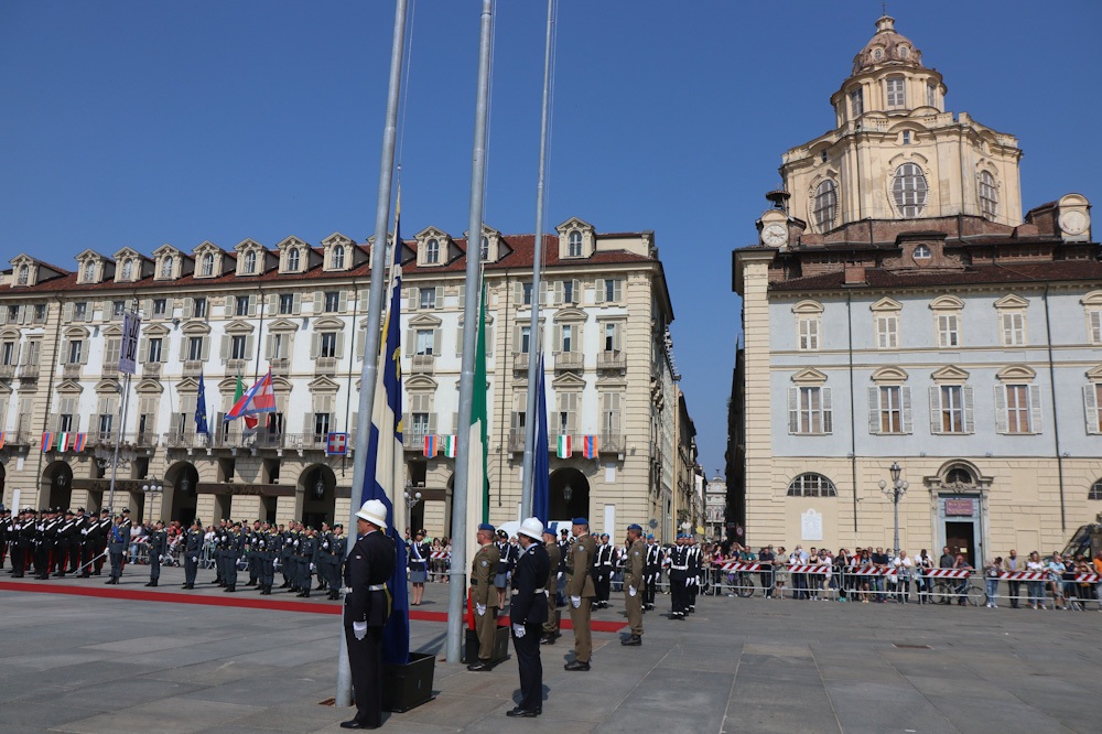 In piazza Castello si è svolta la cerimonia dell’Alza Bandiera alla presenza delle Istituzioni, Autorità civili e miliari (Comune, Città Metropolitana, Regione Piemonte, Prefettura e Questura).
